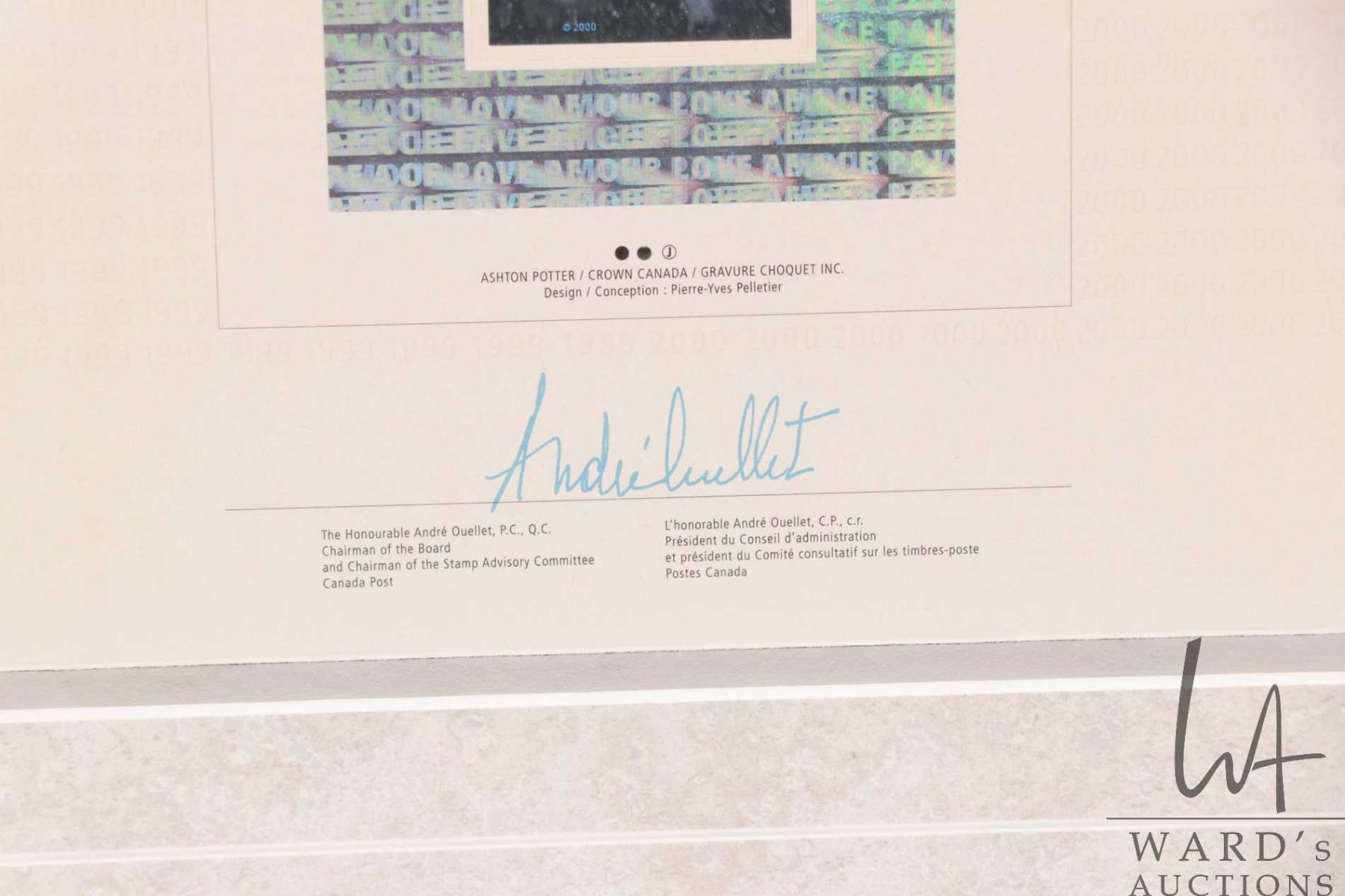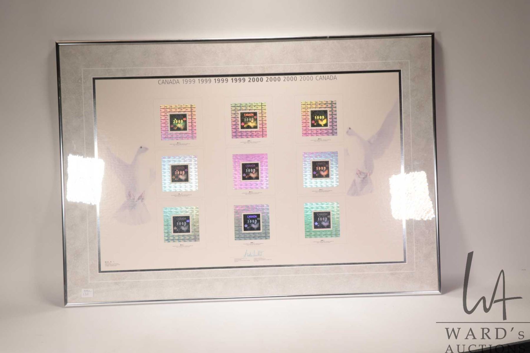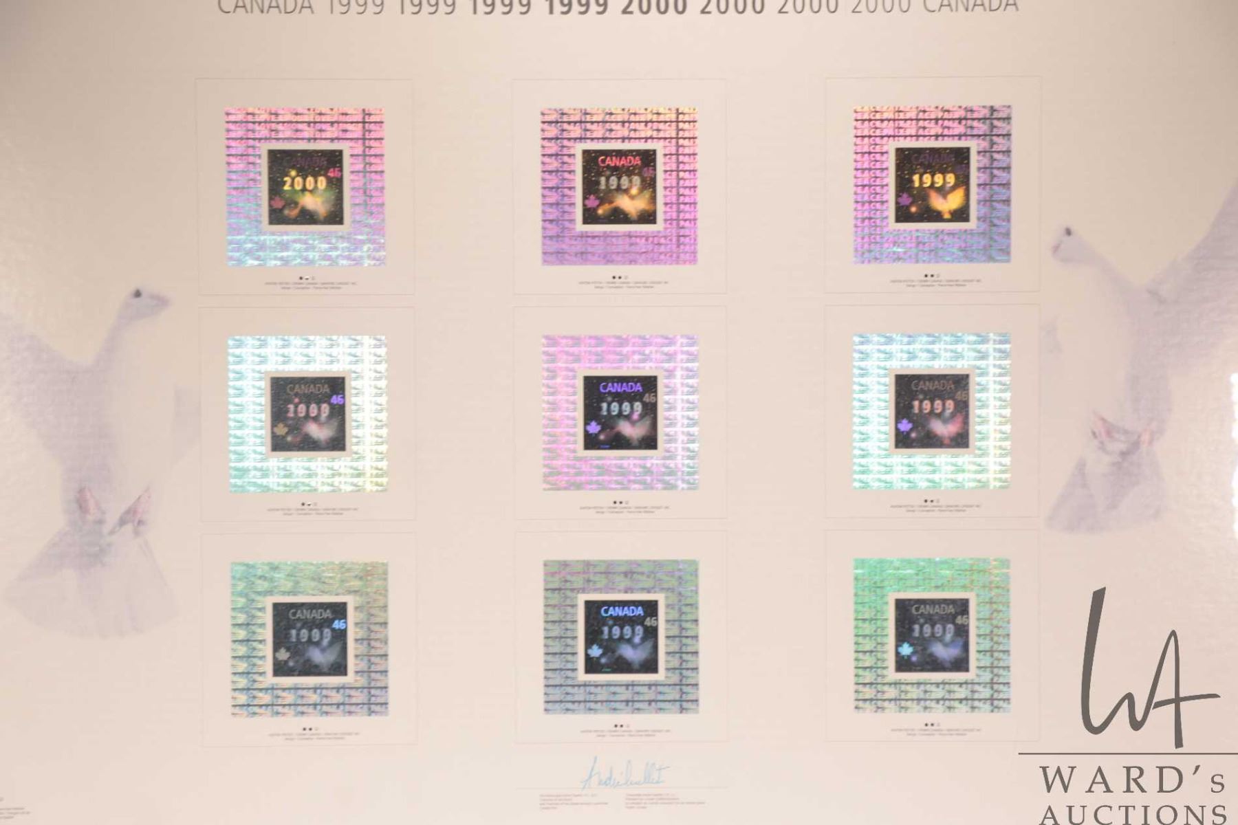 Framed set of Canadian holographic collector stamps, 1999-2000, overall dimensions including frame 23" X 33"