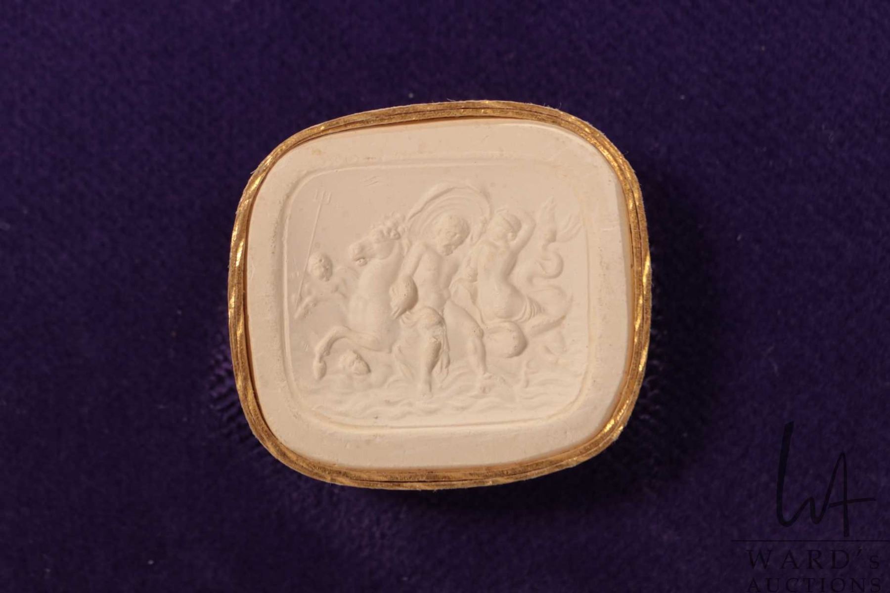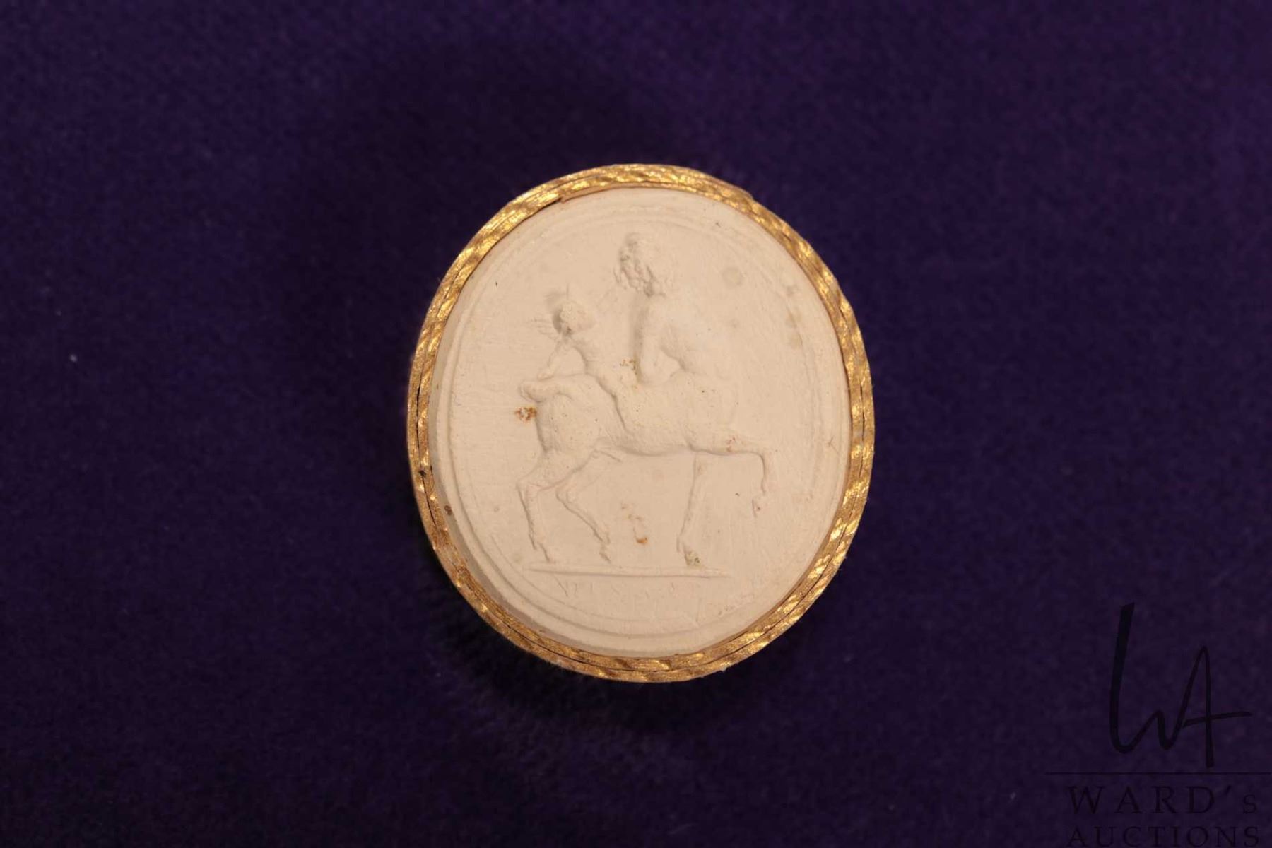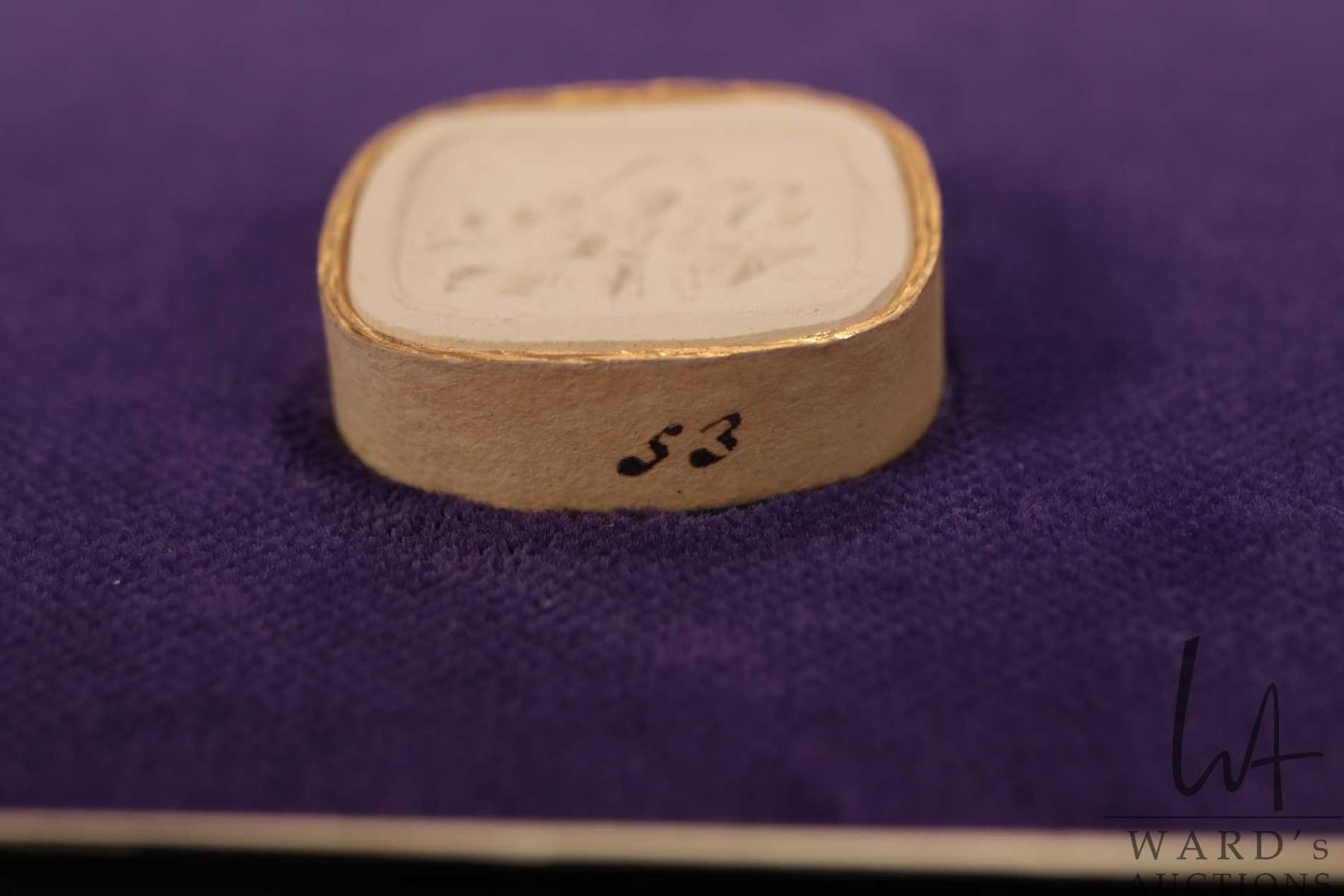 Framed set of twelve Tiberian Designs plaster intaglios, each with a neoclassical design and each fr