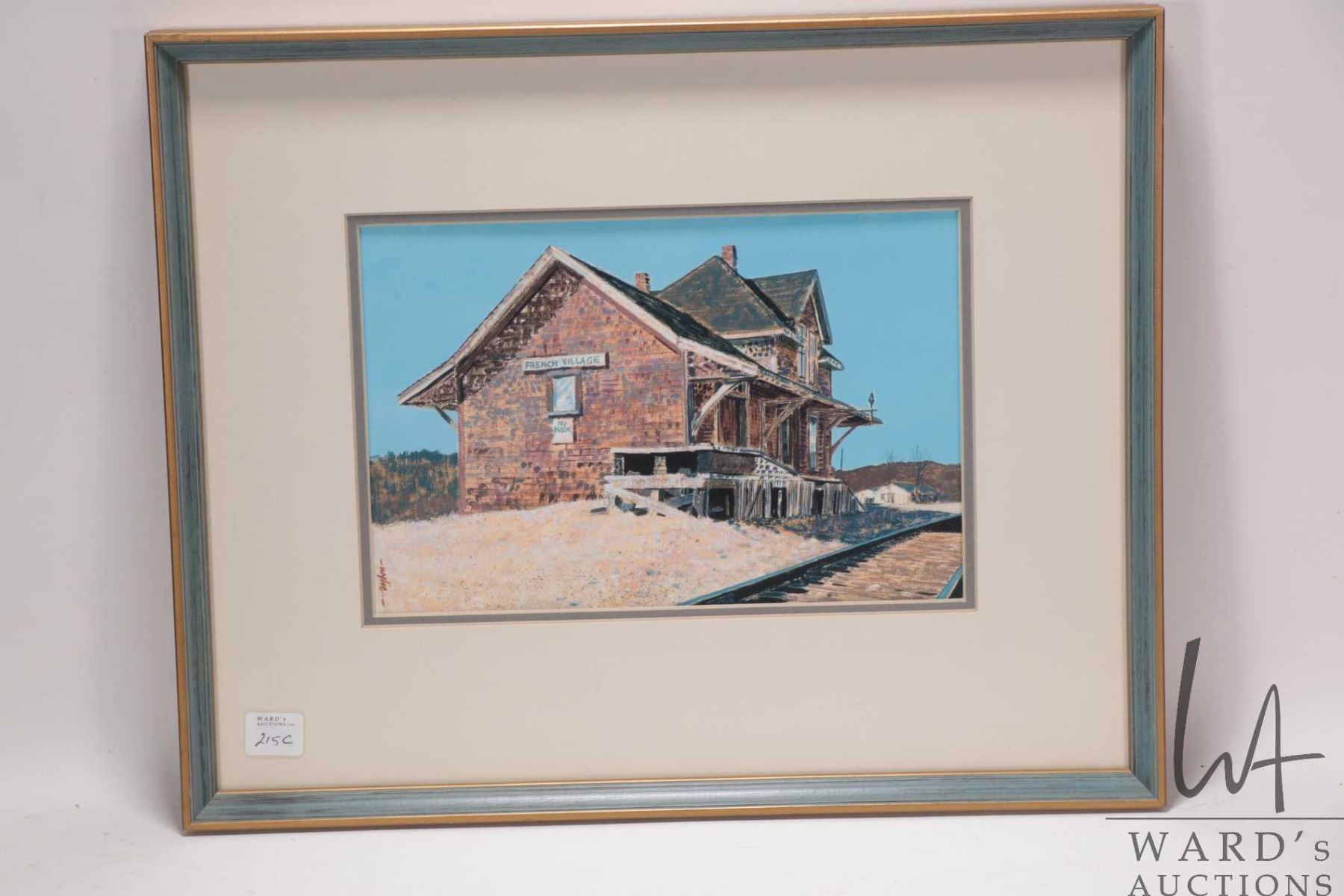 Framed watercolour painting labeled on verso "Withstanding Time" and signed by artist (Alan) Wylie, 7" X 11". Note: Artwork cannot be insured and is often too large to ship. Local pickup.