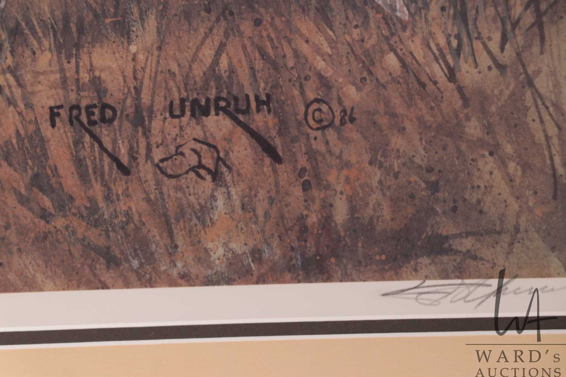 Fred Unruh framed limited edition print titled "Loose Covoy" pencil signed by artist 406/950, 31" X
