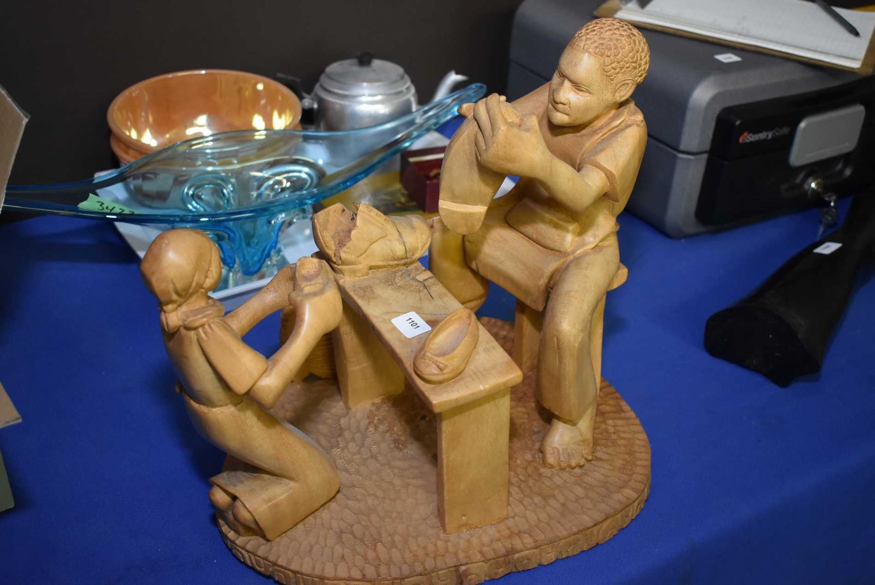 Full 3 dimension sculpture of a cobbler and figure, no signature found, 16" wide