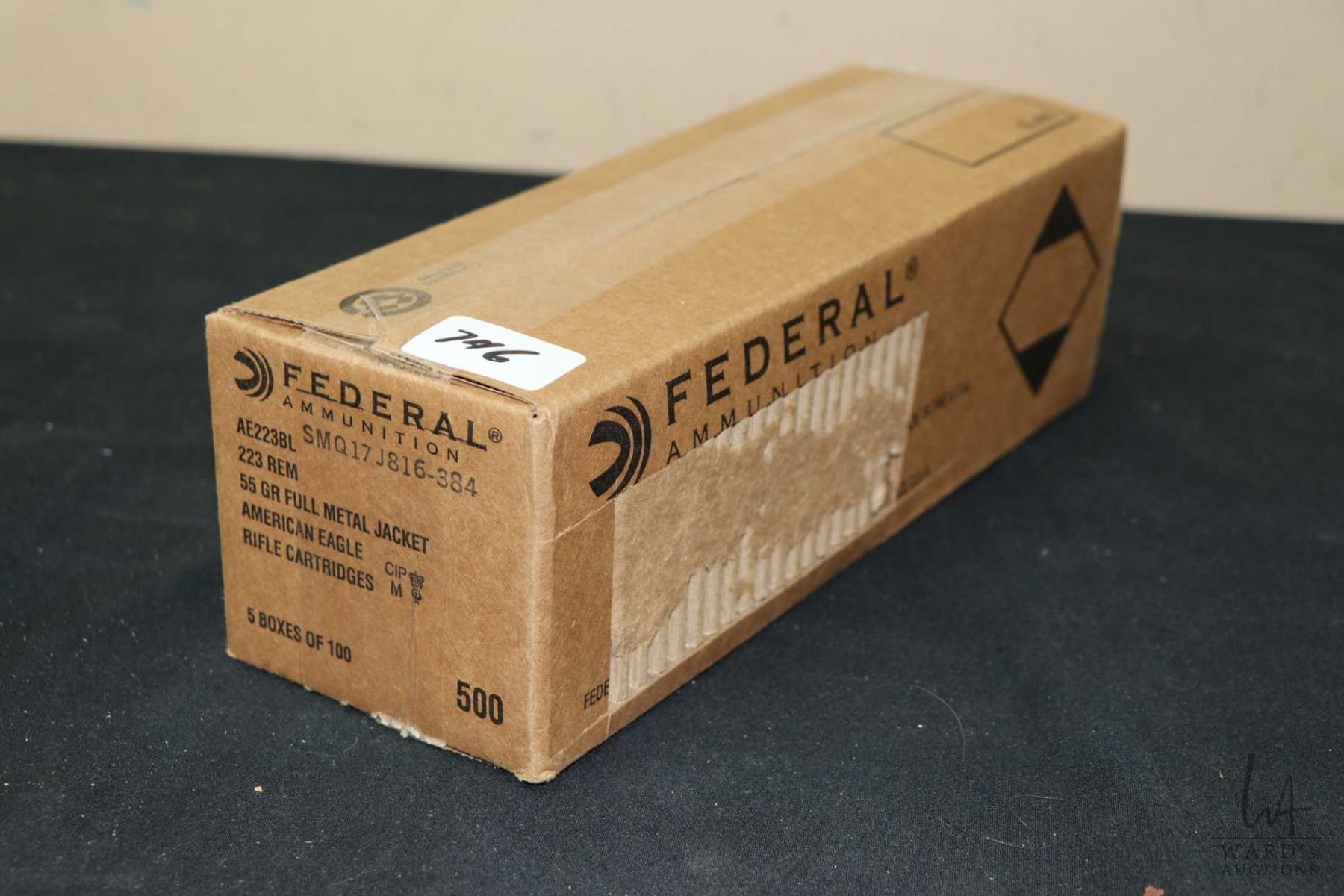 Full case of five boxes X 100 rounds (500 in total) of Federal American Eagle .223 REM, 55 grain full metal jacket rifle cartridges.