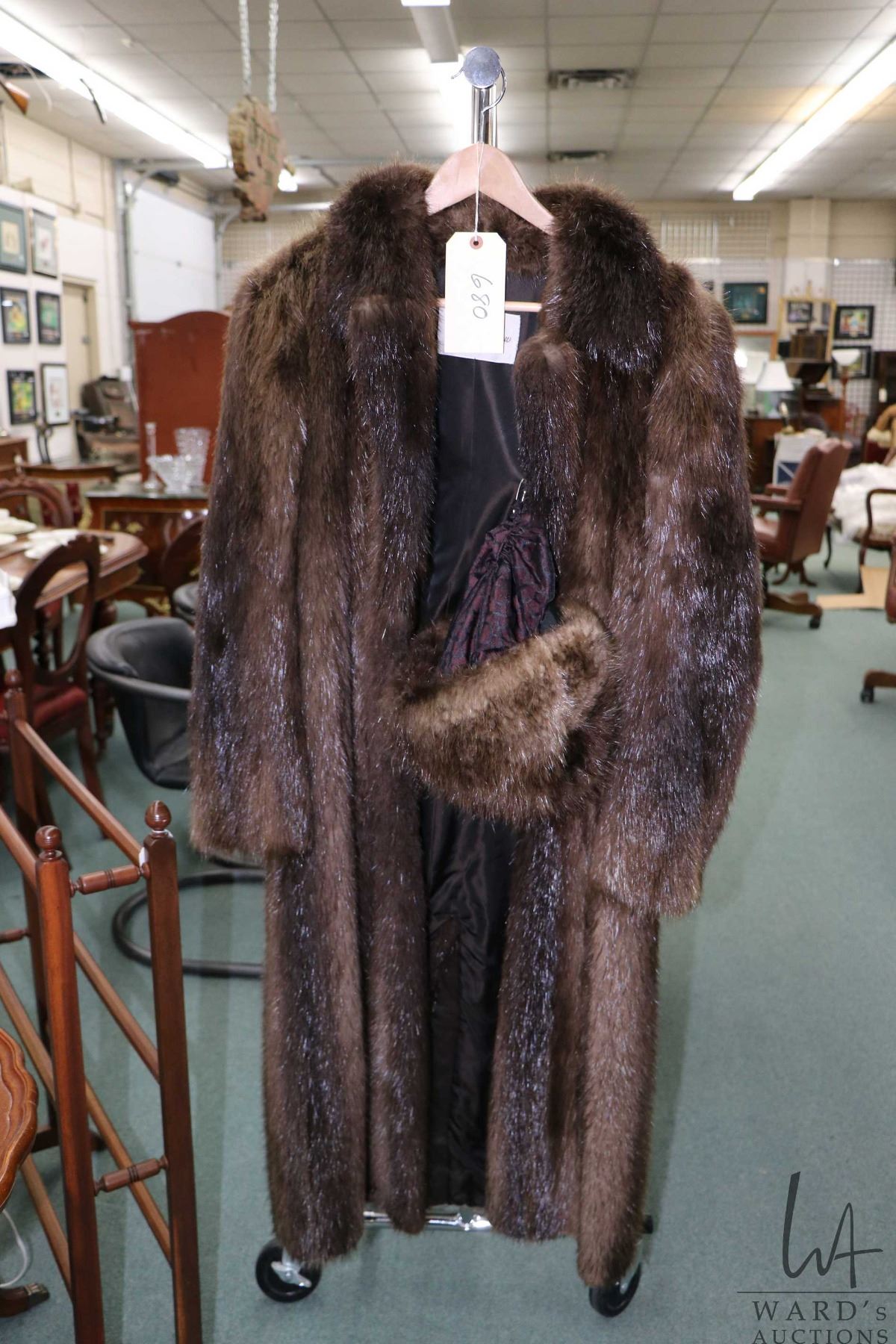 Fully lined full length Holt Renfrew fur coat with co-ordinating fur hat