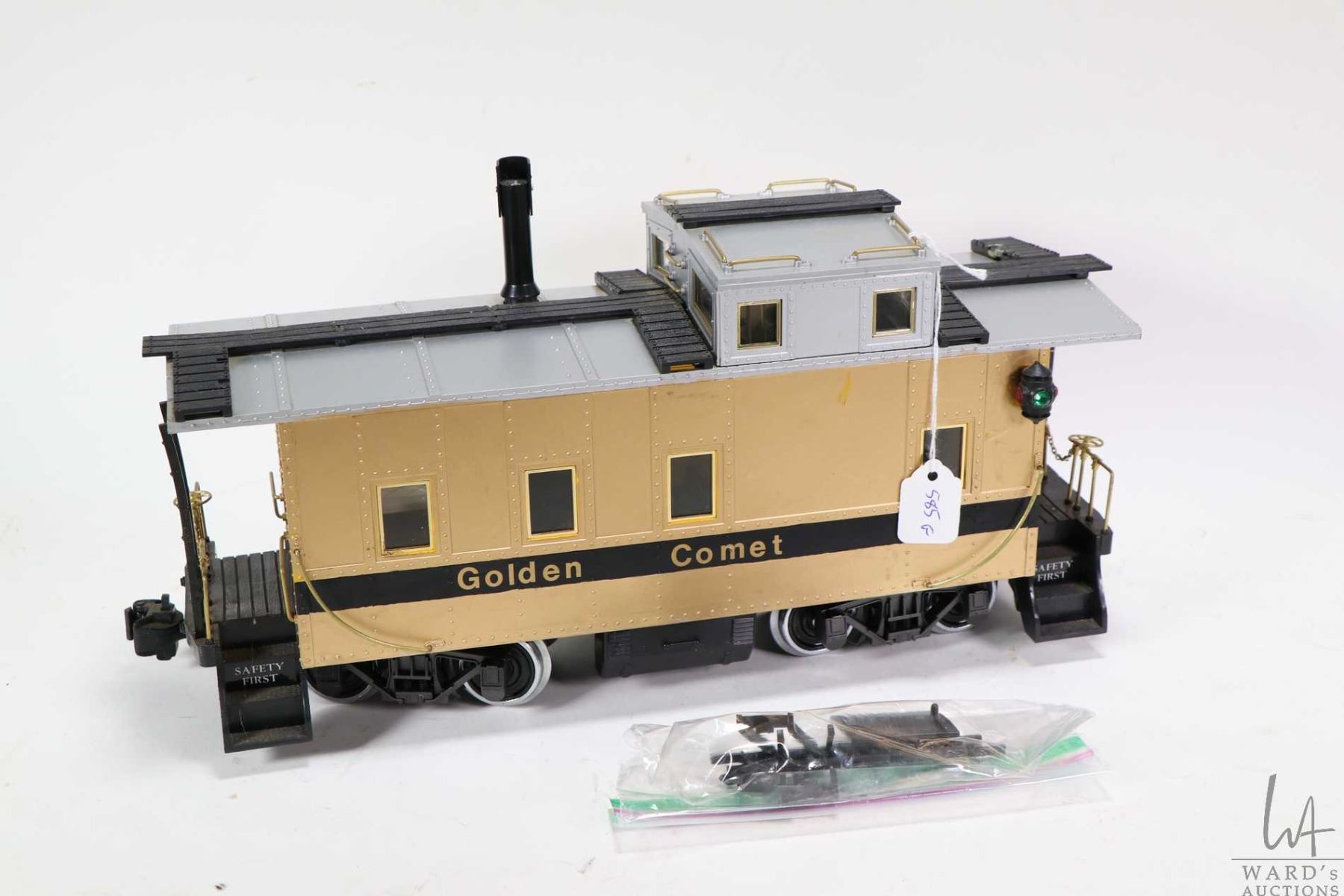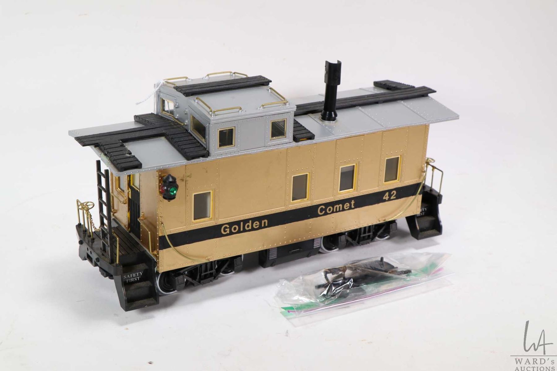 G gauge caboose with smoke and lights " Golden Comet" not tested at time of cataloguing, note user painted and labelled
