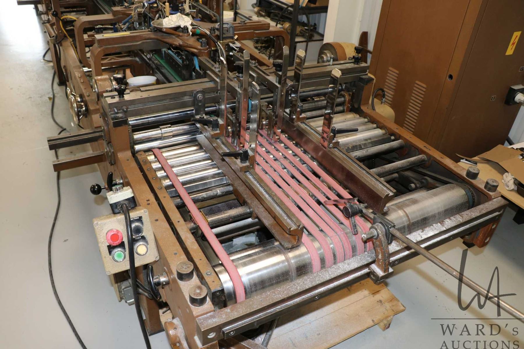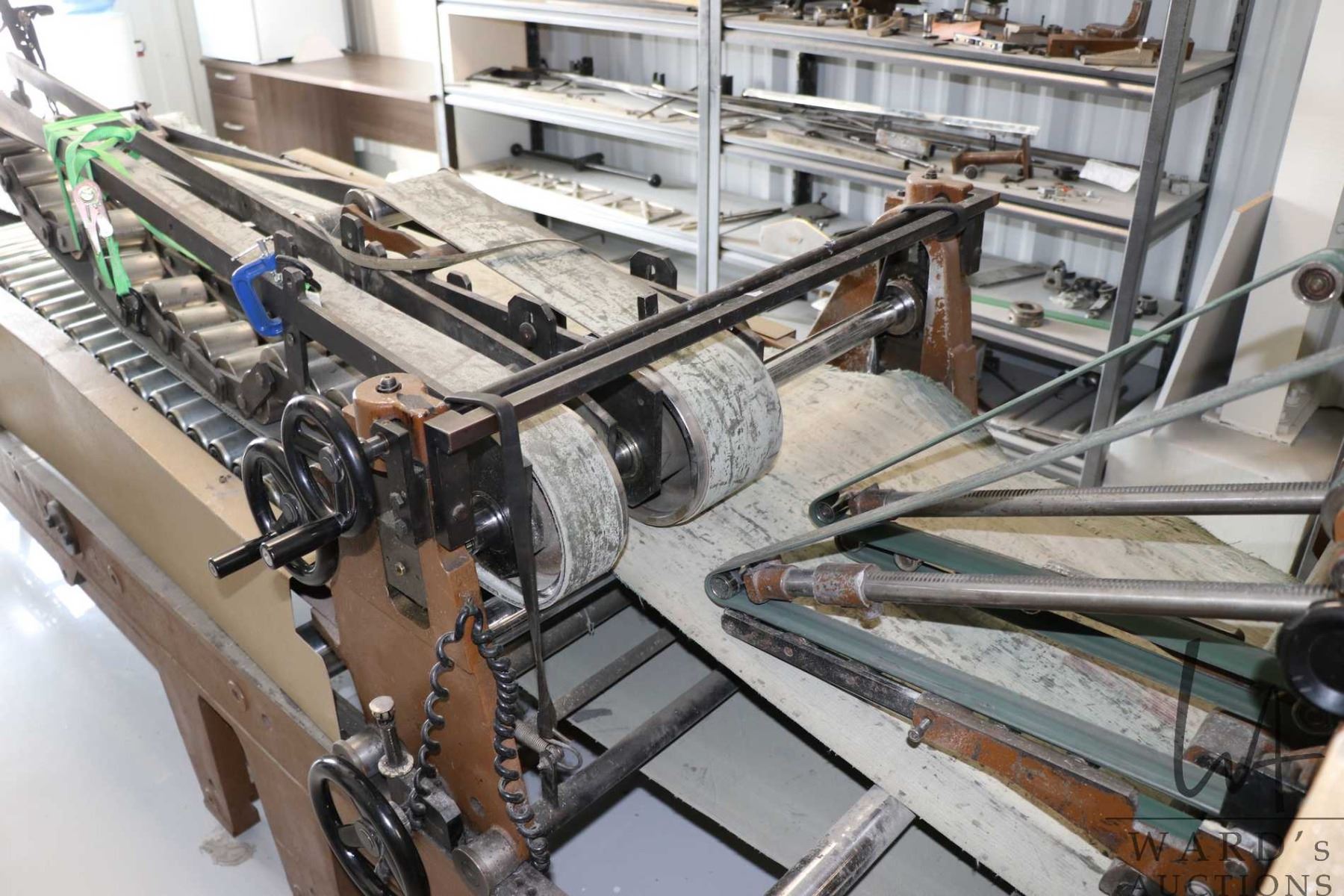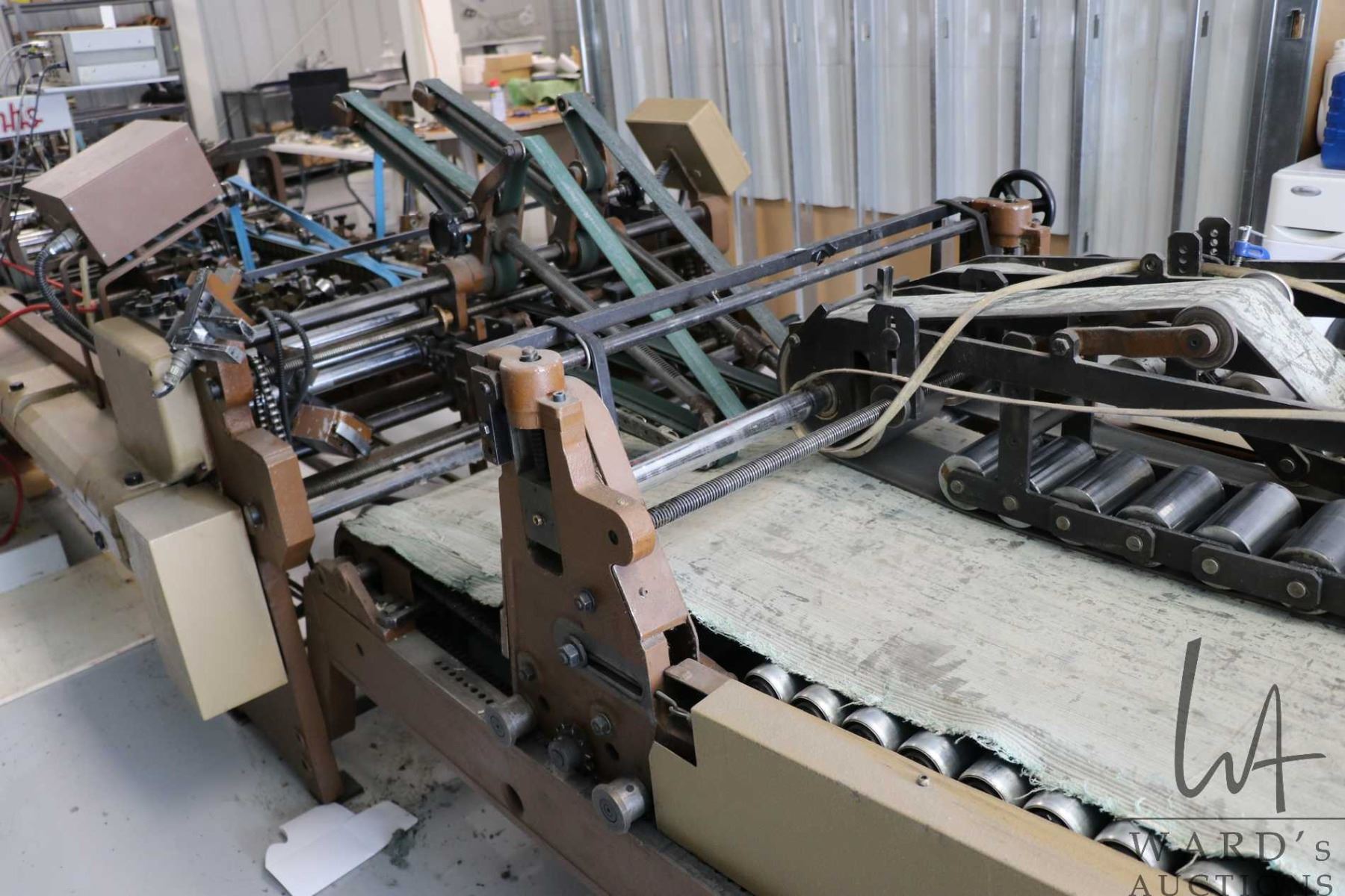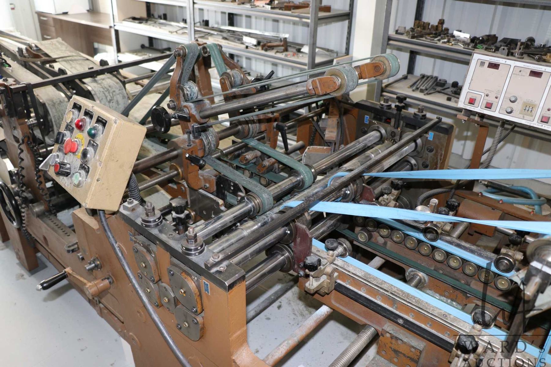 Gandossi & Fossati Model CS92 Folder Gluer serial number C301, approximately 411" long and includes a huge amount of tooling (tens of thousands of dollars worth) for configuring to different jobs. Used for folding and gluing cartons, boxes, folders etc. Does not include the hss C-1100 Glue System that will be sold as lot 109. - See video on website shot on March 30, 2026. This setup can be seen in operation on preview day. - Physical removal of the machine must be done by a licensed, experienced and insured mover like Wingenback (wingenback.com)