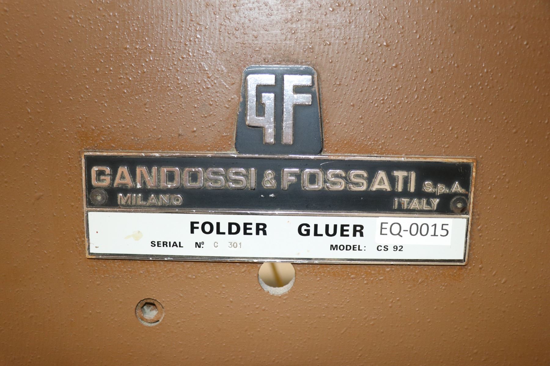 Gandossi & Fossati Model CS92 Folder Gluer serial number C301, approximately 411" long and includes