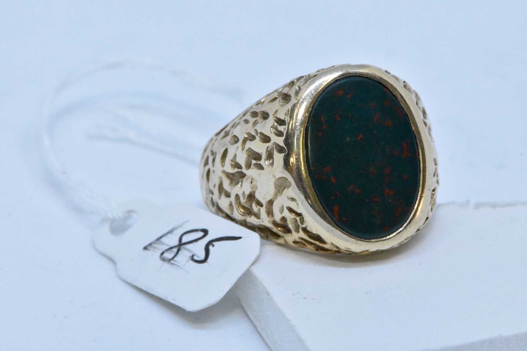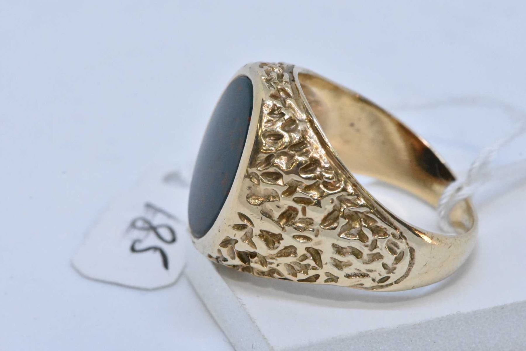 Gent's 10kt yellow gold and oval cut bloodstone ring