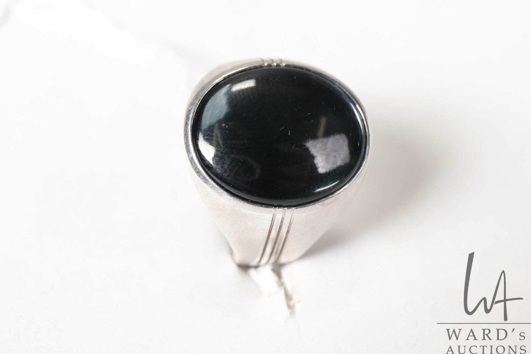 Gent's Tacori Legend sterling silver ring set with oval topaz over hematite gemstones, 16.36 cts., size 10 3/4"