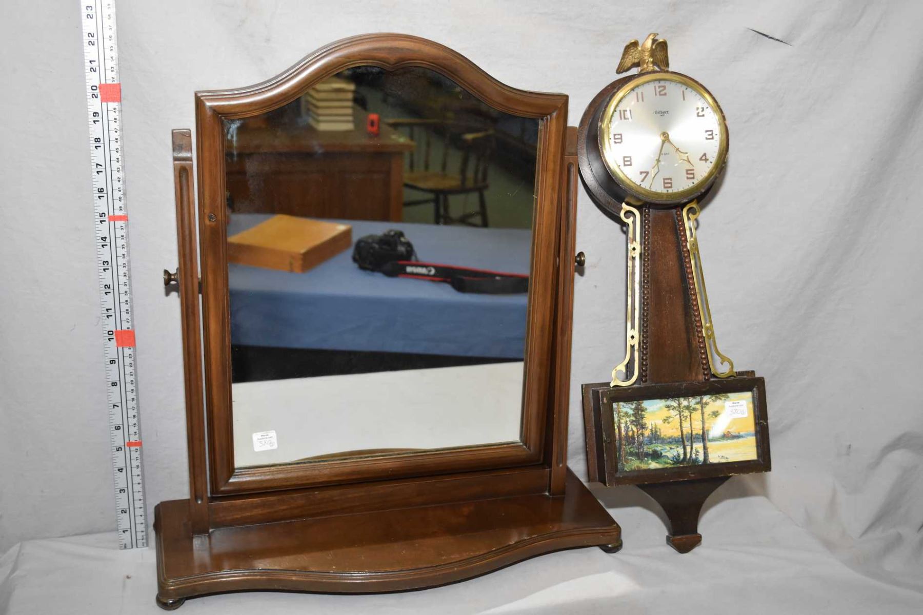 Gilbert reproduction banjo clock and a walnut tilting table top mirror