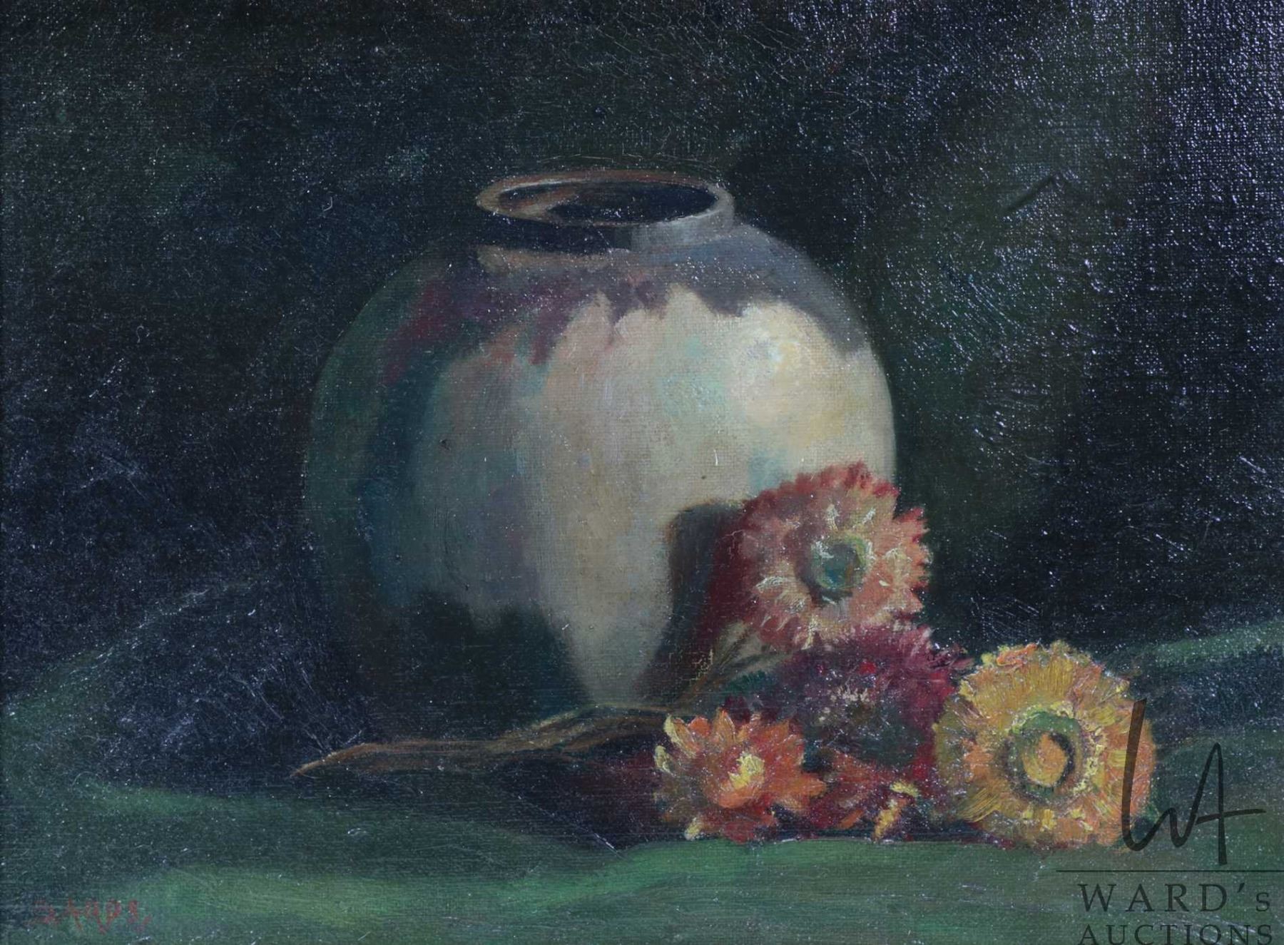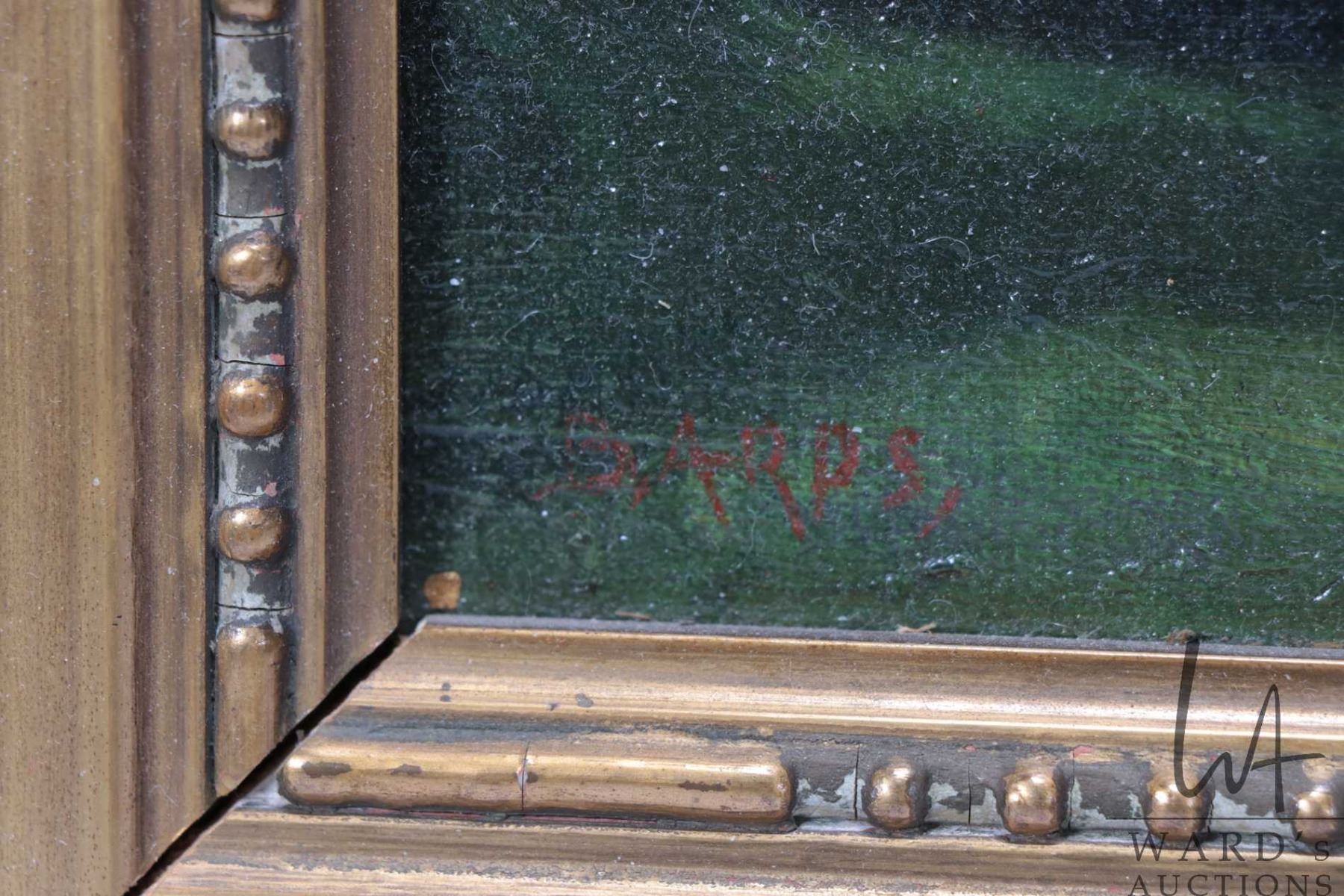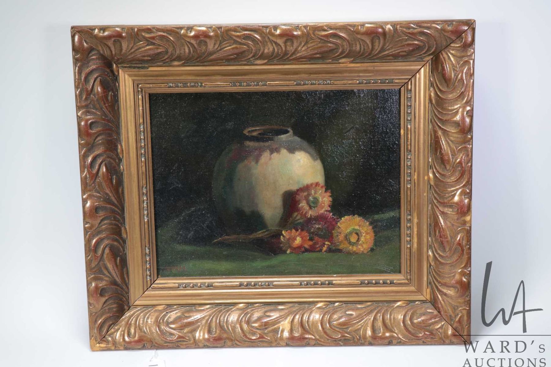 Gilt framed antique oil on board still-life, painting, signed by artist Bards, 10" X 13"