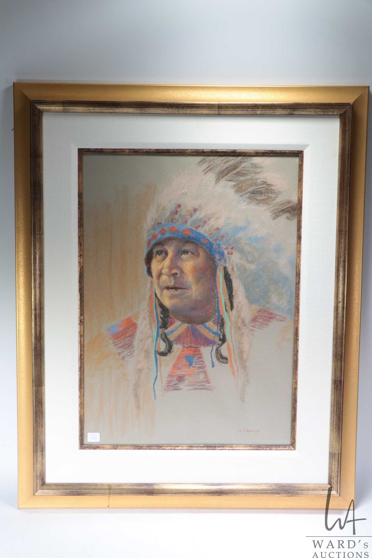 Gilt framed original pastel portrait, signed by artist H. Freeze, 24" X 17". Note: Not available for shipping. Local pickup only