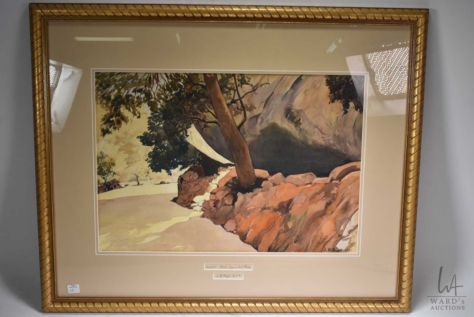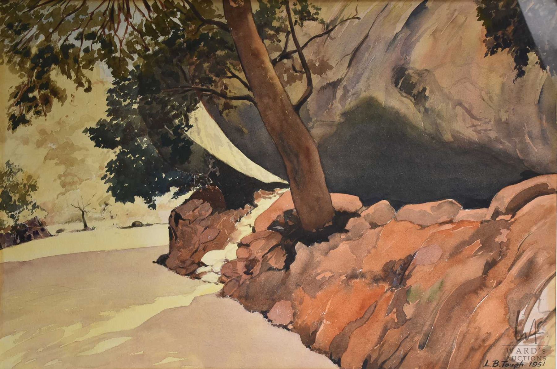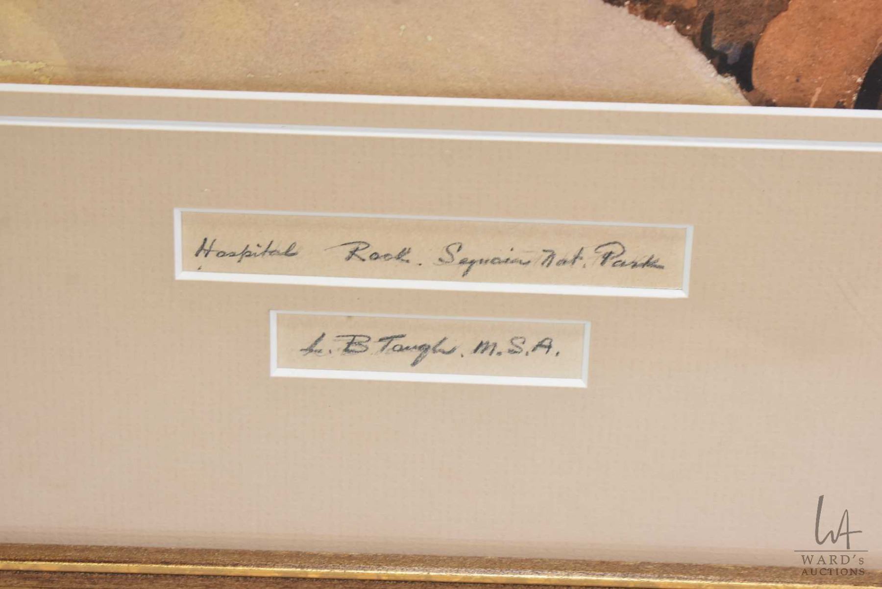 Gilt framed watercolour painting titled "Hospital Rock, Sequioa National Park" and pencil signed by artist L.B. Taugh, 15"X 22"