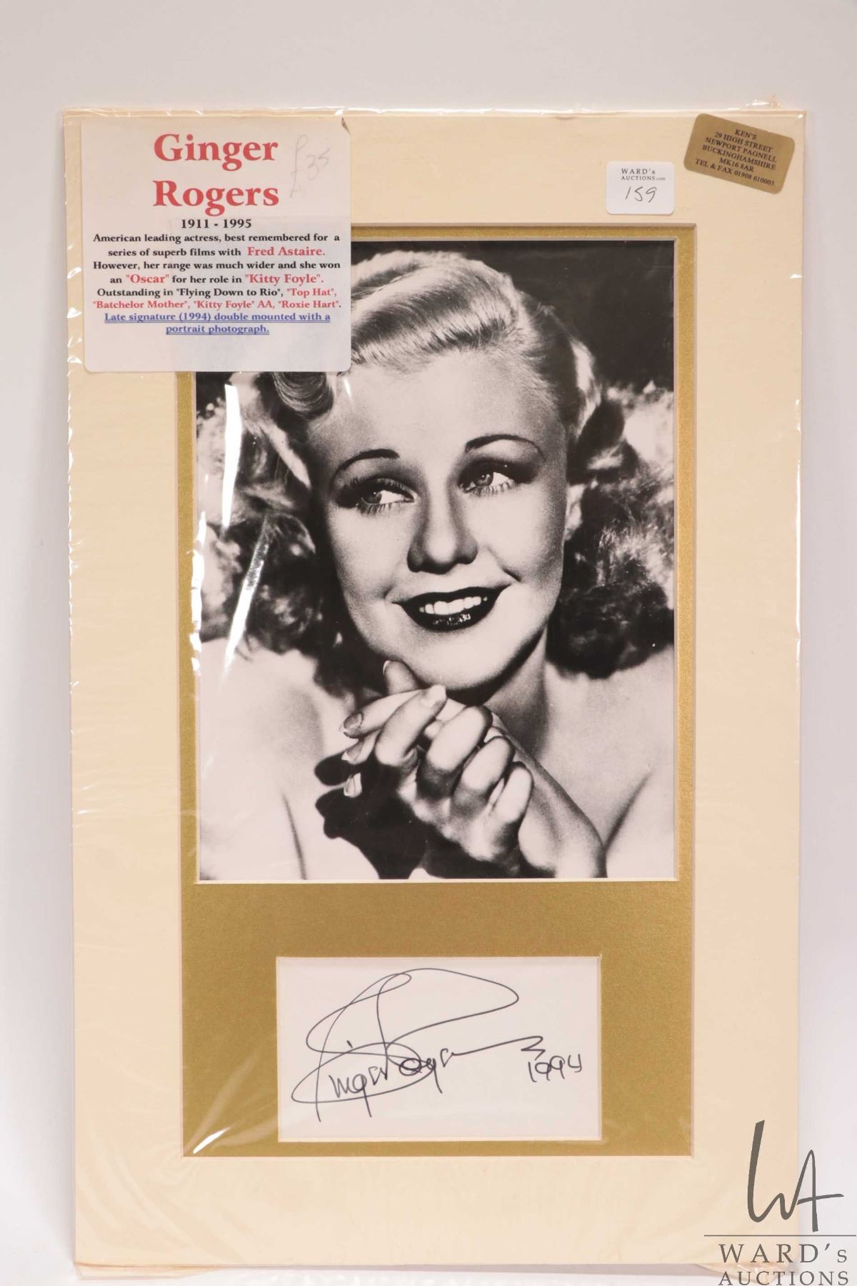 Ginger Rogers, American actress, double mounted, mat framed black and white photograph with autograp