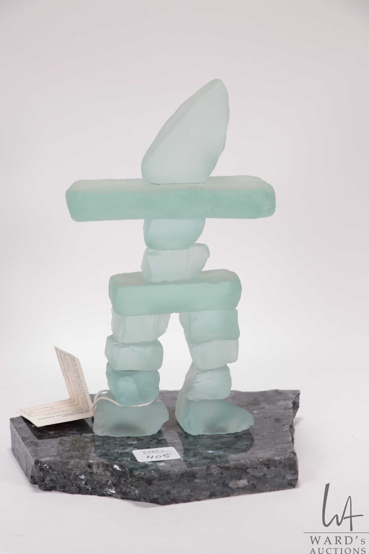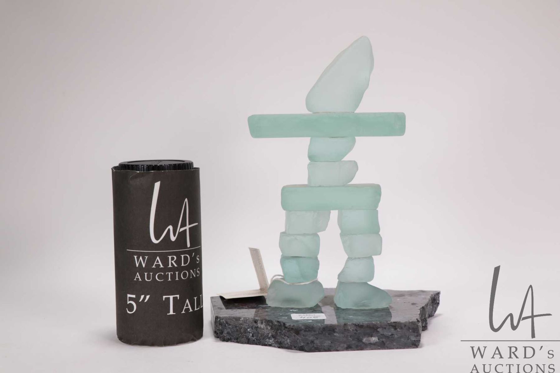 Glass inukshuk on granite base by artist Samwille Nivianxie, Inukjauk, '95, (27)-5-58992, 9 1/2" inc