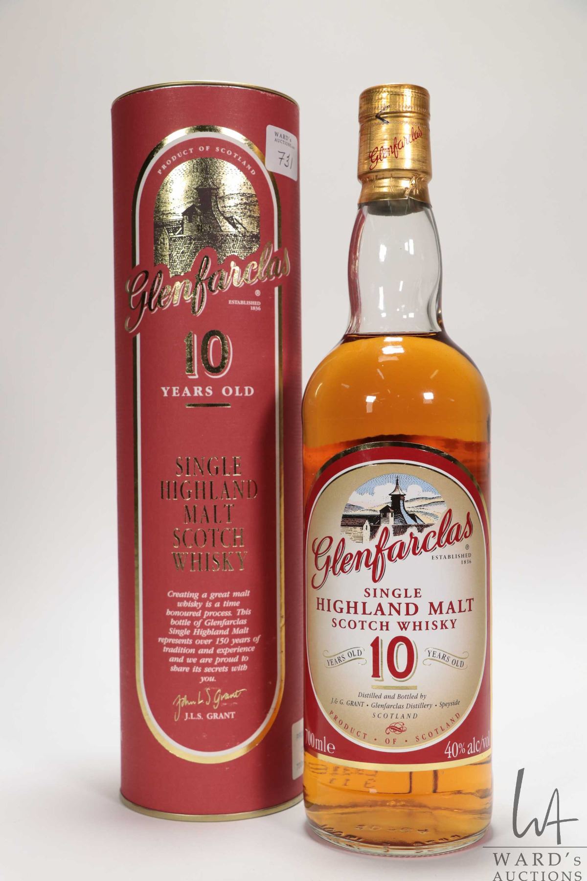 Glenfarclas/ 10 Year Old/ Single Highland Malt Scotch Whisky/ 700m l/ 40% ABV Old Label- Red Cardboard Tube- Prior to George Grant NOTE: Alcohol cannot be insured by any courier in Canada. Local pick up recommended. Canadian bidders only.