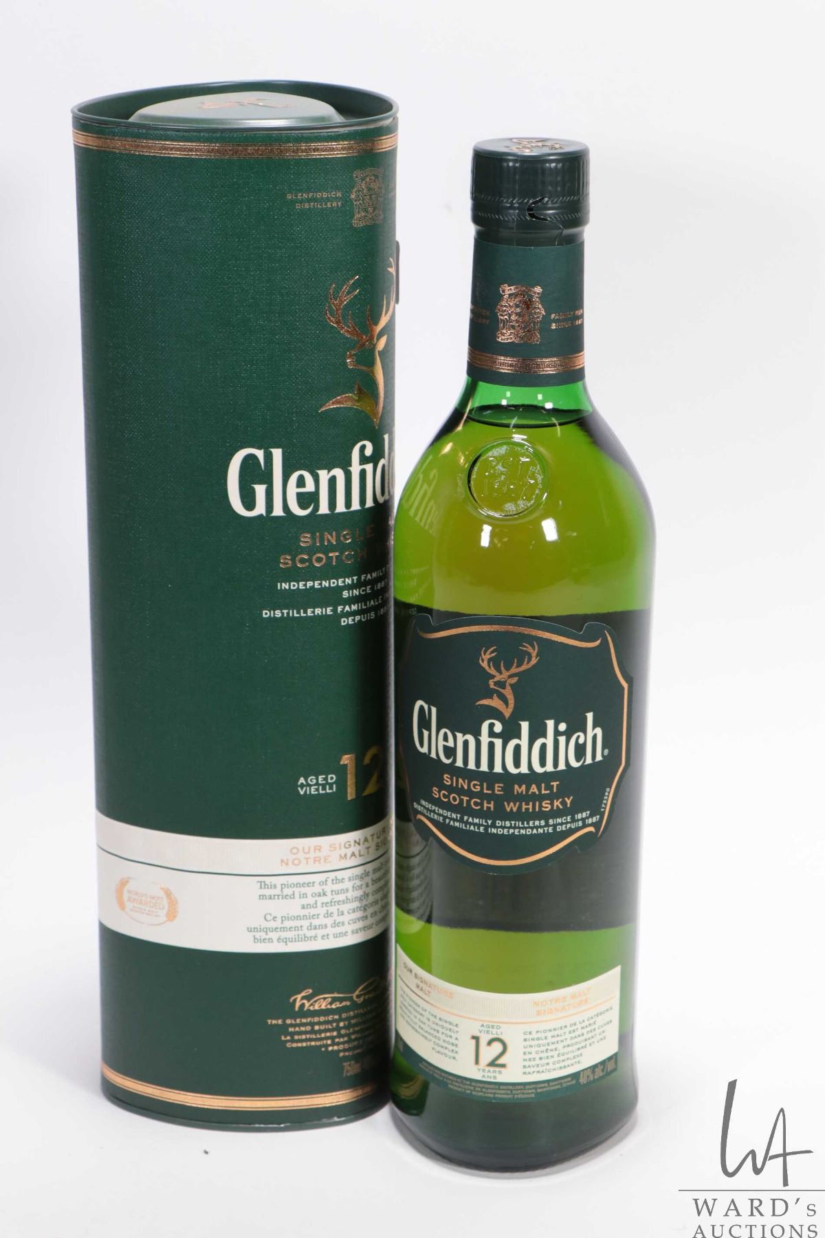 Glenfiddich/ Single Malt Scotch Whisky/ 12 Years/ 750ml/ 40% with cardboard sleeve Note: Shipping only available in Canada. Shippers insurance is unavailable. Foreign buyers must arrange their own brokers