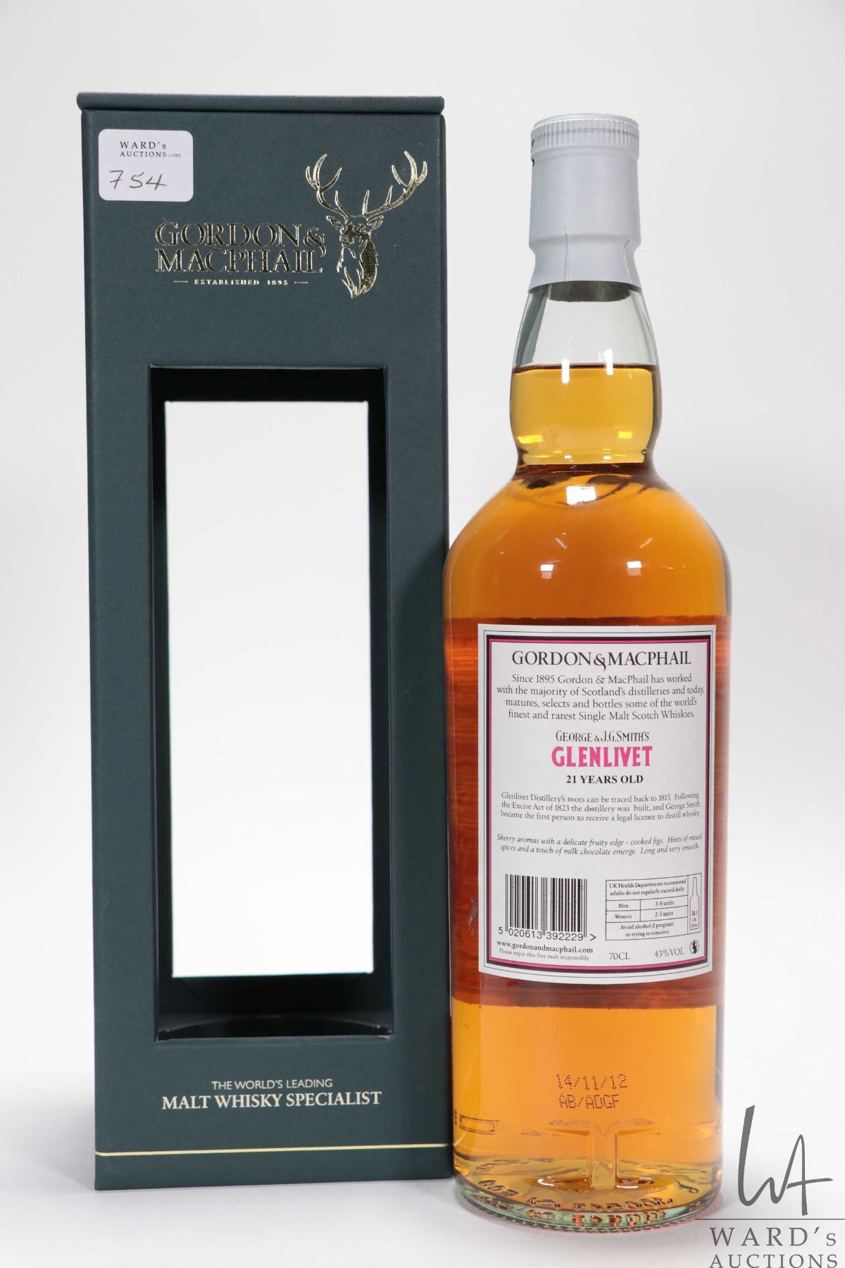Glenlivet/ Gordon & MacPhail/ 21 Year Old/ Single Malt Scoth Whisky/ Btld 2012/ 700ml/ 43% ABV NOTE: Alcohol cannot be insured by any courier in Canada. Local pick up recommended. Canadian bidders only.