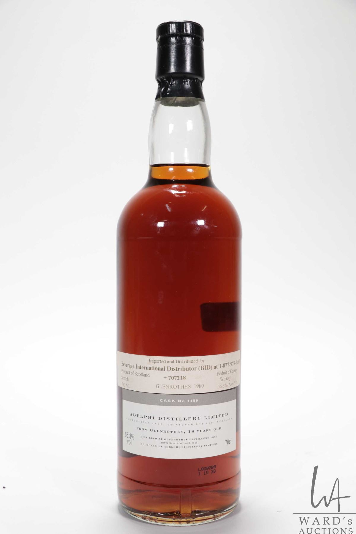 Glenrothes/ 1980/ 18 Year Old/ Adelphi/ Single Cask/ Cask number 1459/ One of 282 Bottles/ No Box/ 700ml/ 56.3% ABV. NOTE: Alcohol cannot be insured by any courier in Canada. Local pick up recommended. Canadian bidders only.