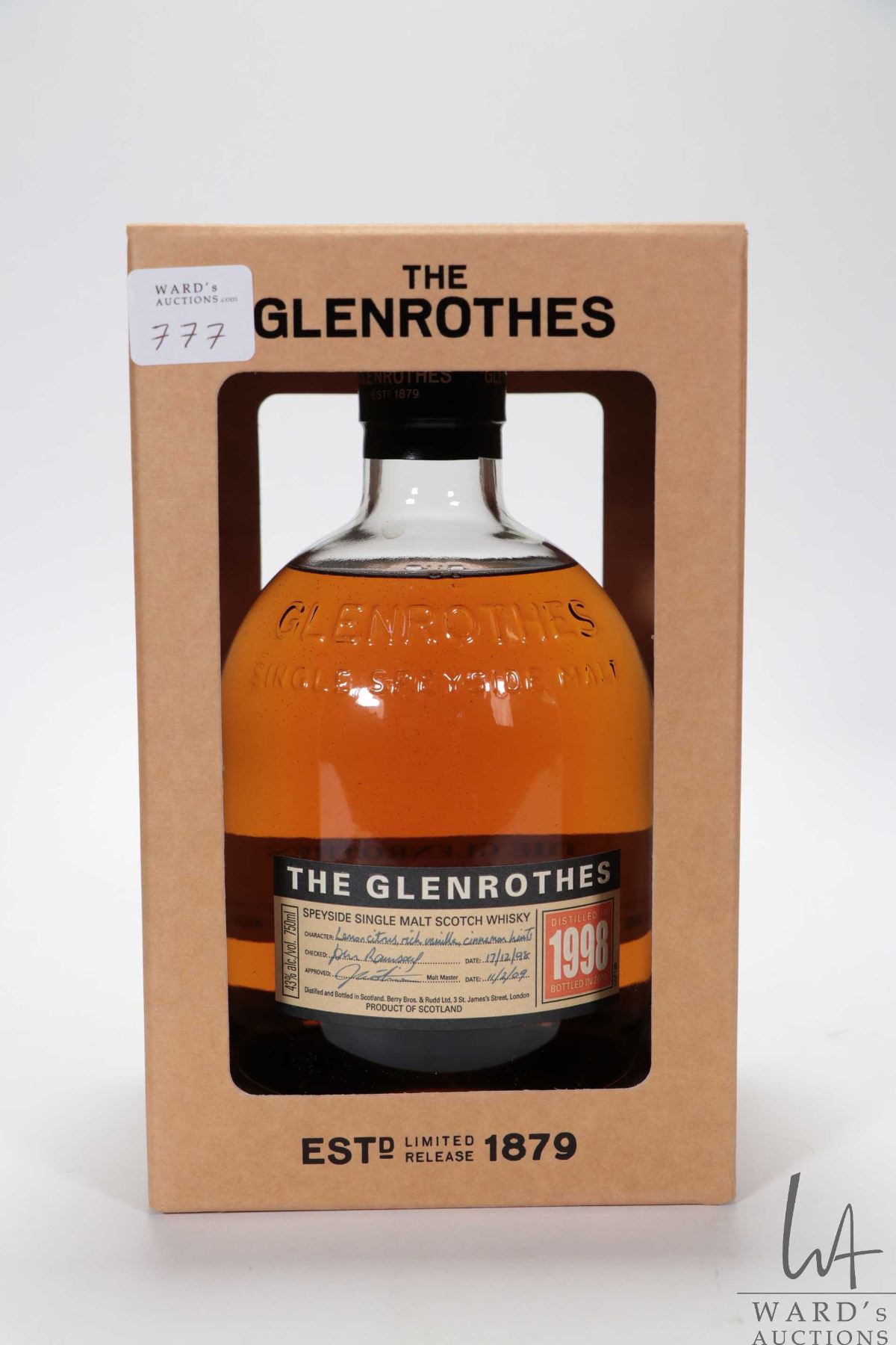 Glenrothes/ 1998/ Speyside single malt scotch whisky/ Bottled 2010/ 750ml/ 43% ABV. NOTE: Alcohol cannot be insured by any courier in Canada. Local pick up recommended. Canadian bidders only.
