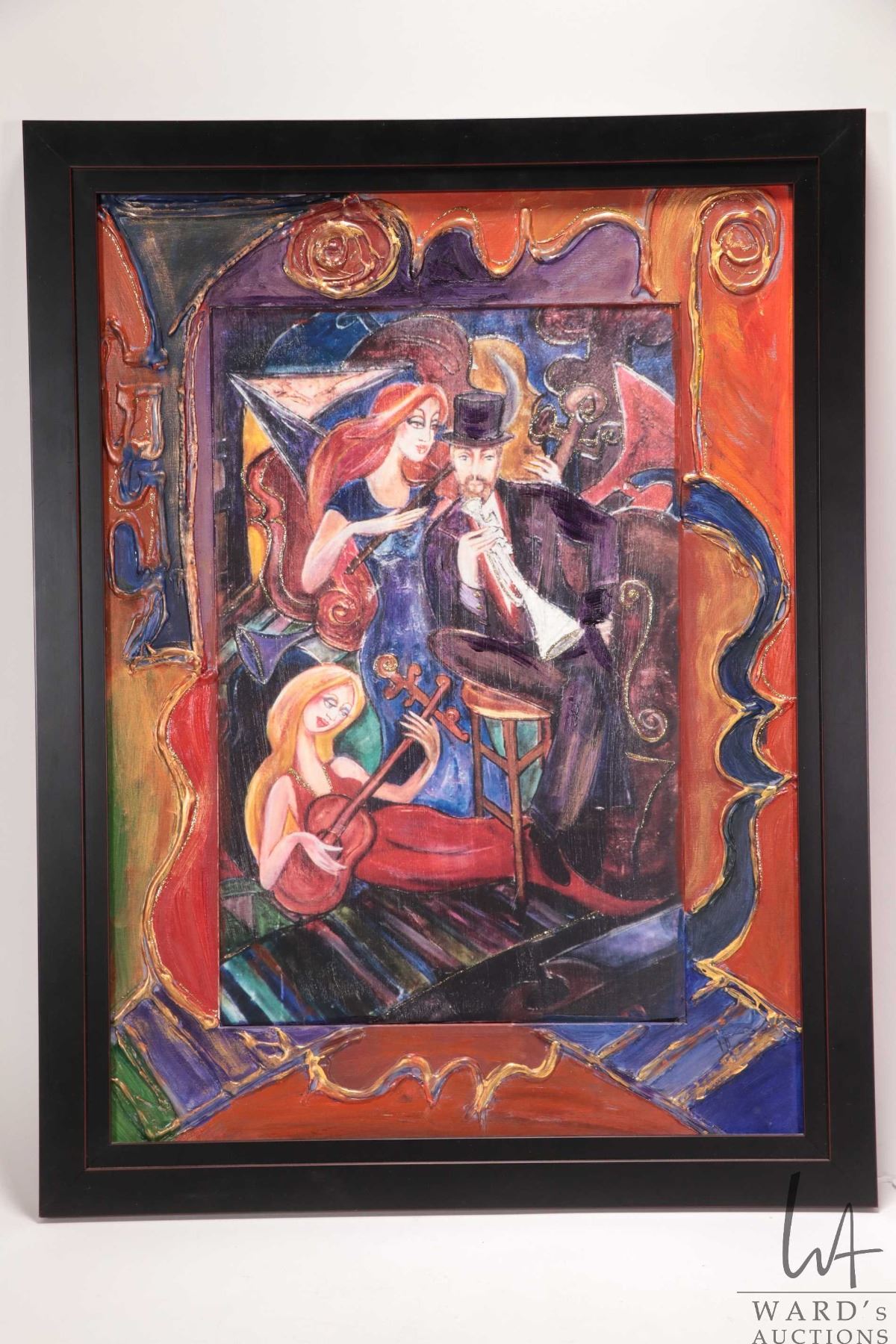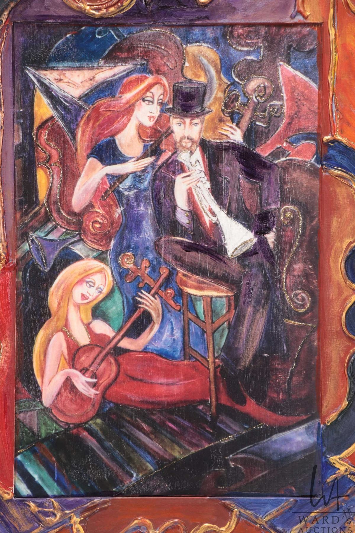 Gracie Jane framed original mixed media painting of a trio of musicians, 19" X 14" 0.