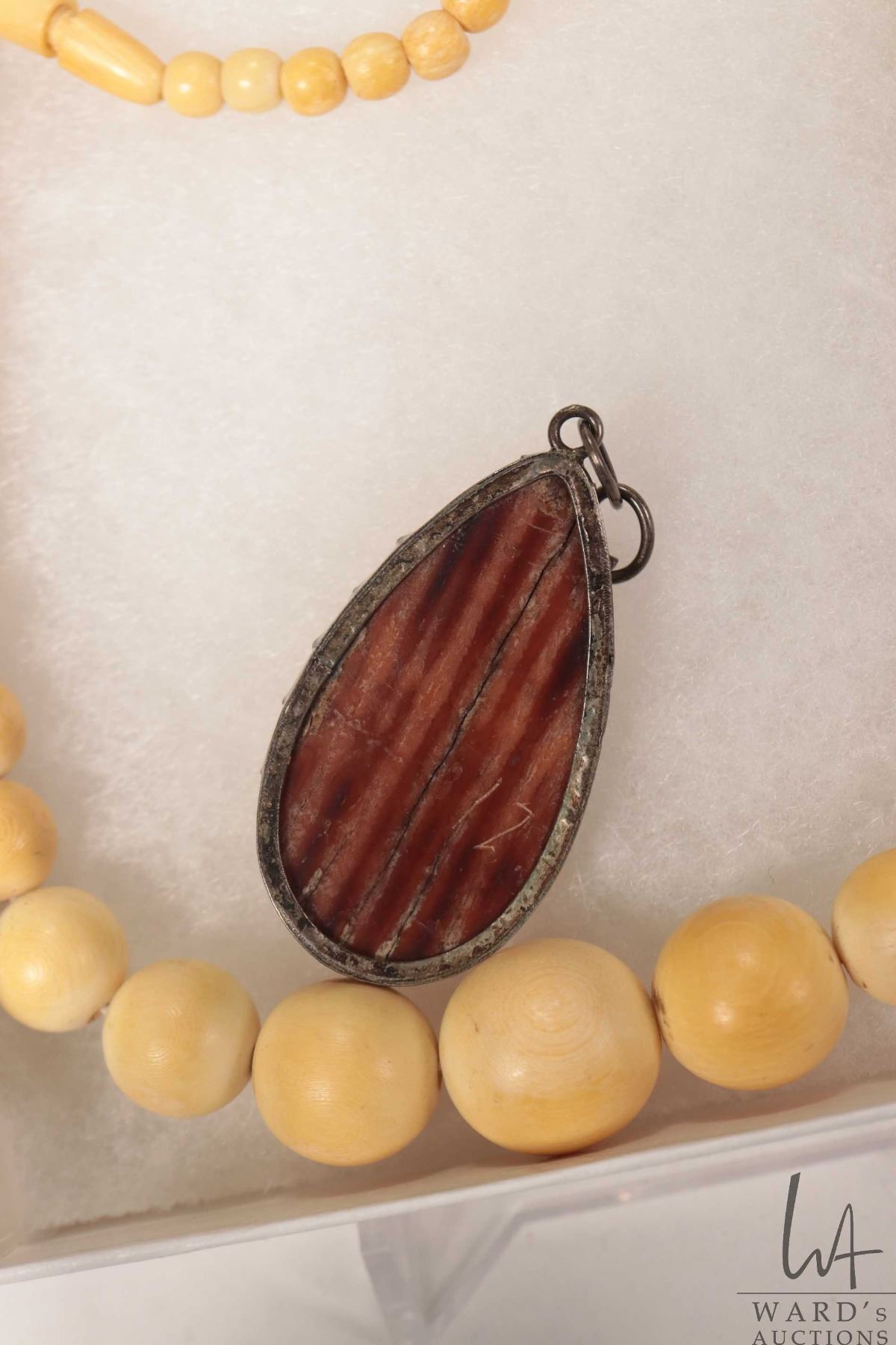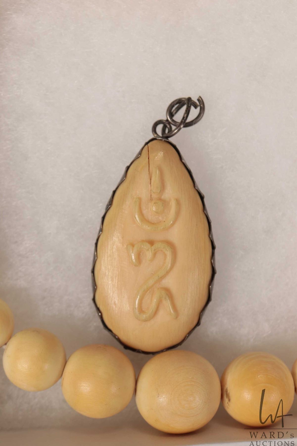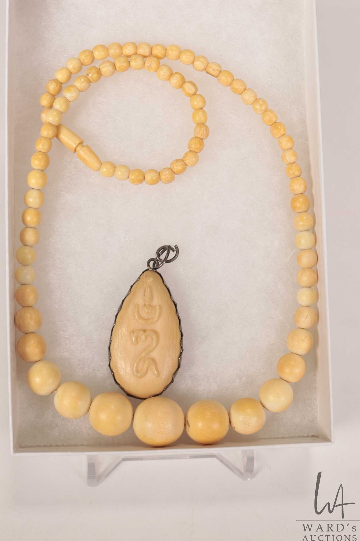 Graduated beaded ivory 17" necklace and a hand carved pendant. Can not be shipped outside of Canada. Canadian buyers only.