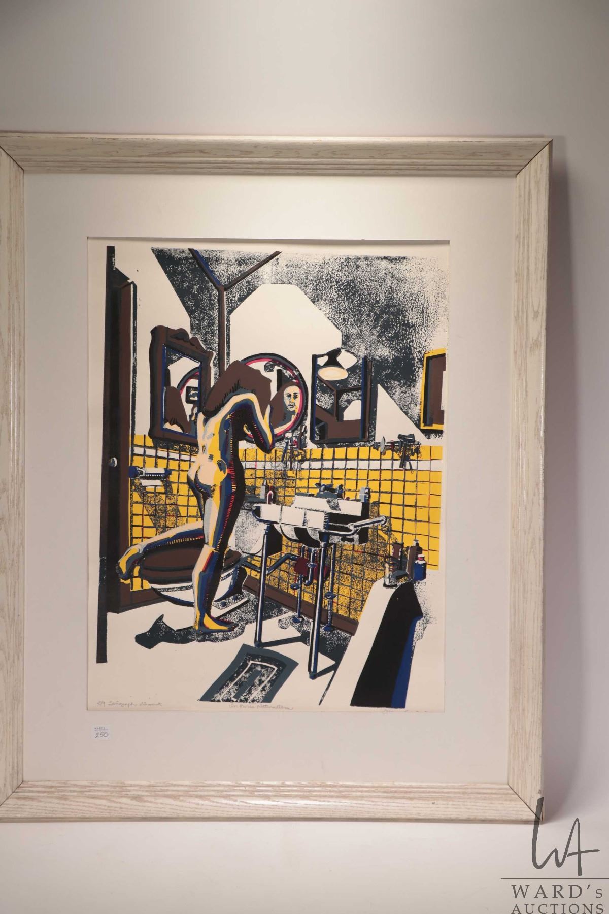 Gregory Swaine, limited edition serigraph lino cut print, titled "In Puris Naturalilus", 2/9, overal