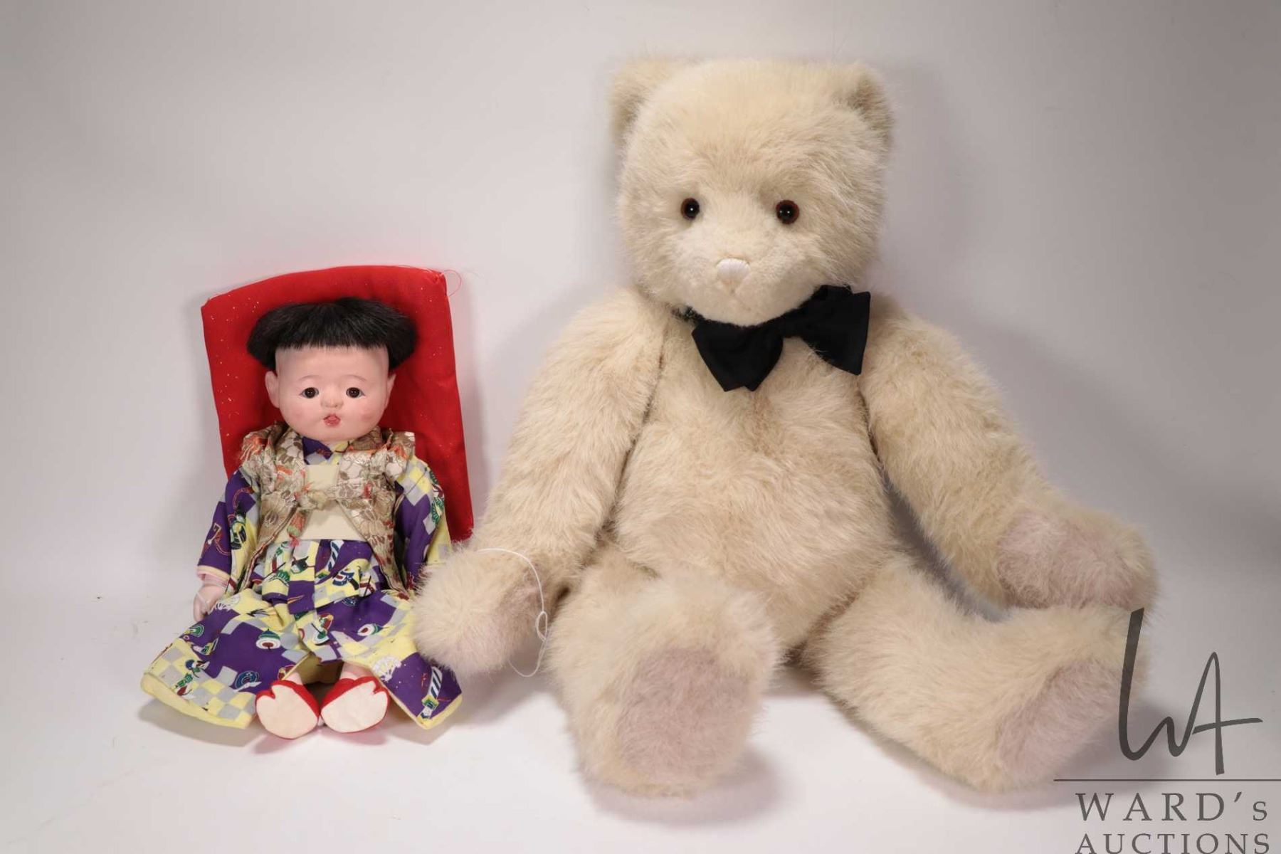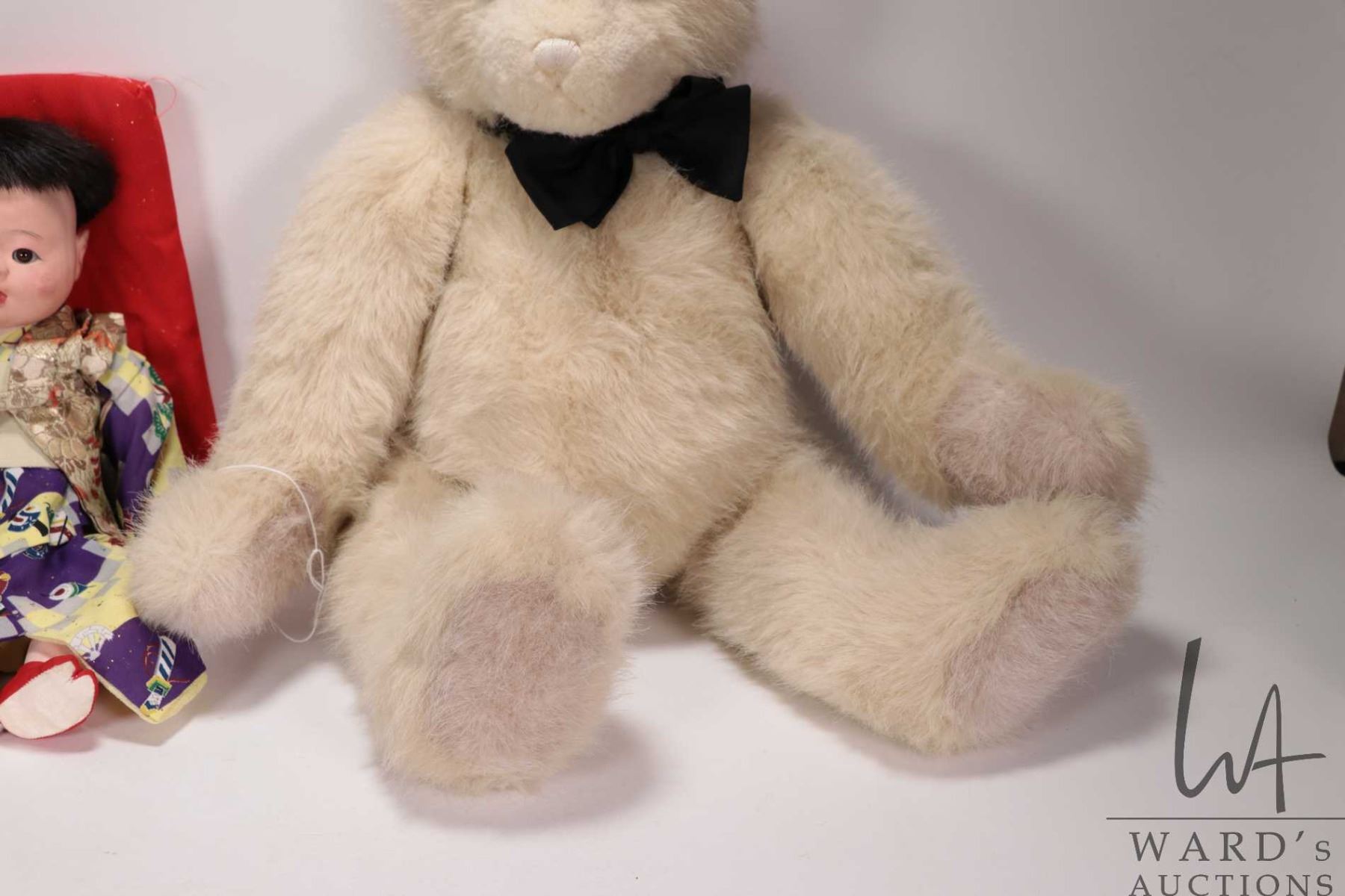 Gund limited edition "Collector's Classic" jointed teddy bear, 23" and a vintage Japanese baby doll