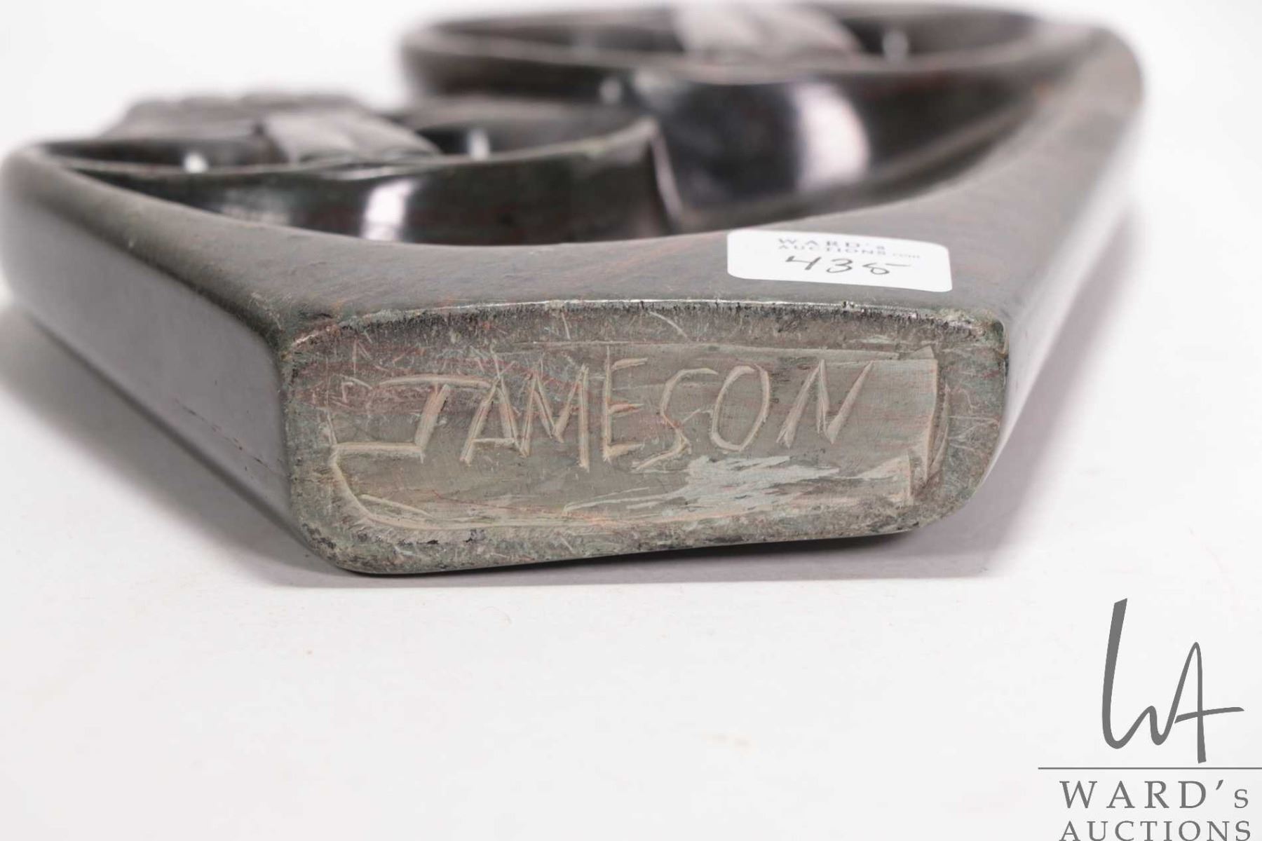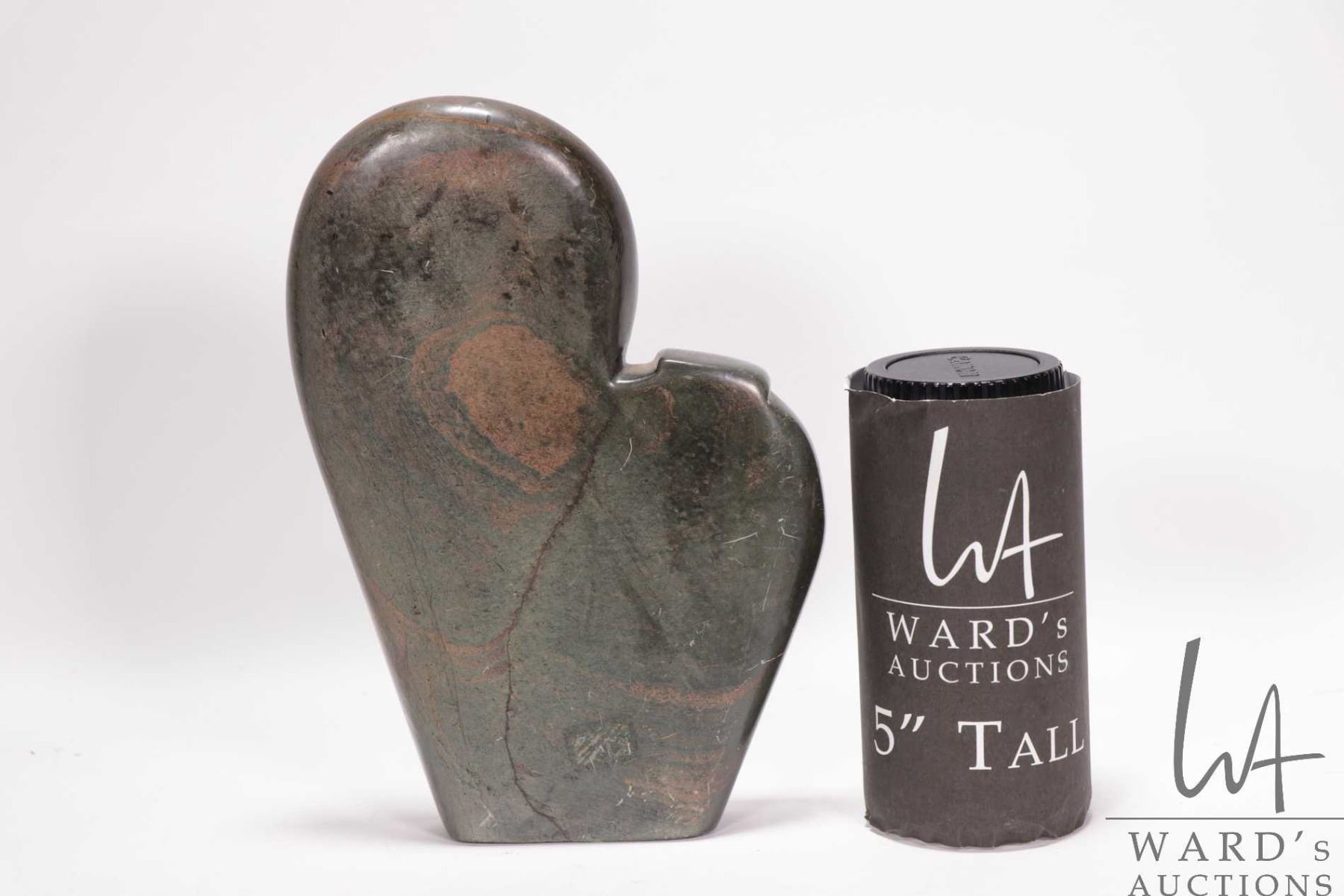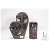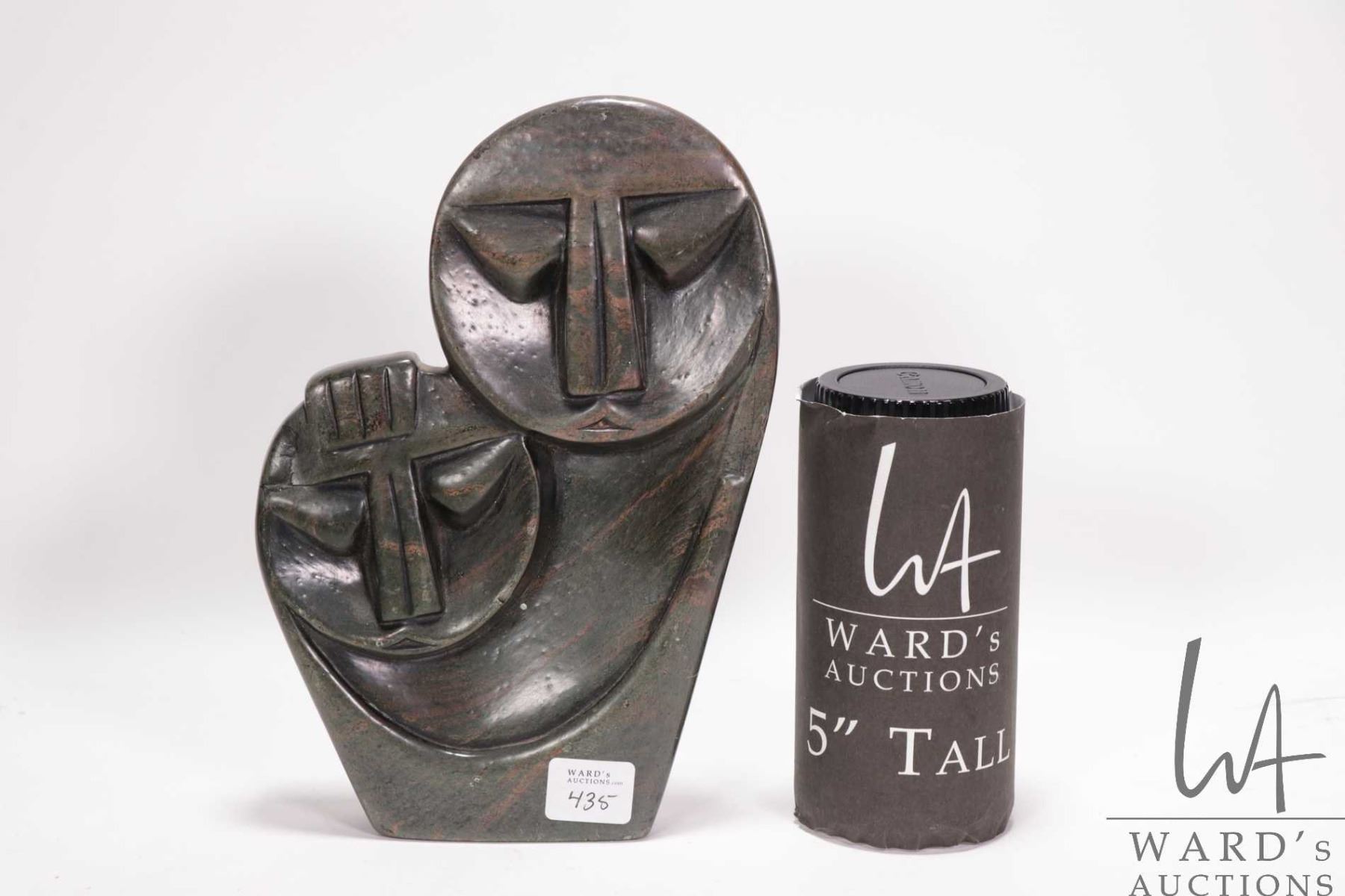 Hand carved African stone modernist sculpture featuring two faces, signed by artist Jameson, 8 1/2"