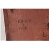 Hand carved Haida wall plaque, titled on verso "Eagle + Fish" and signed by artist Dennis Linkiater 95, 29 1/2"