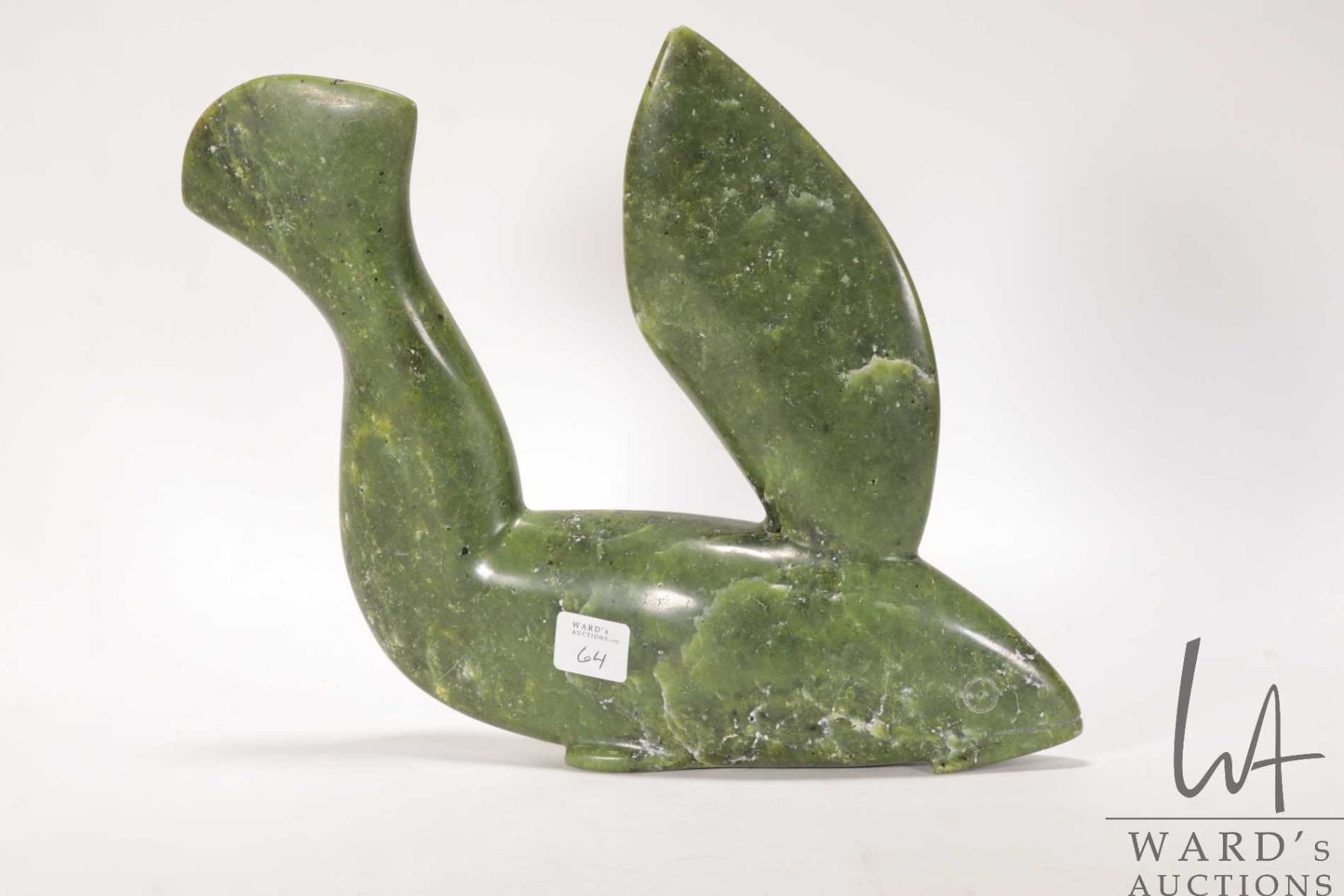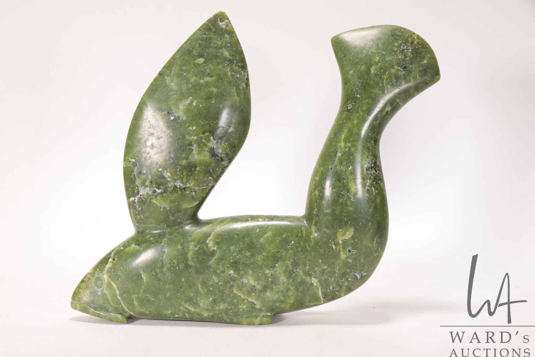 Hand carved Inuit soapstone fish sculpture signed by artist Peter Negeak, approximately 10" H X 9 1/2"