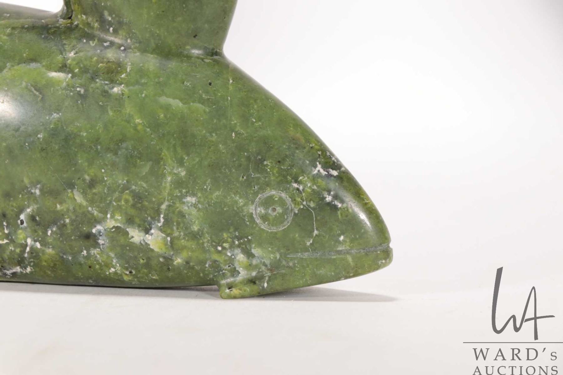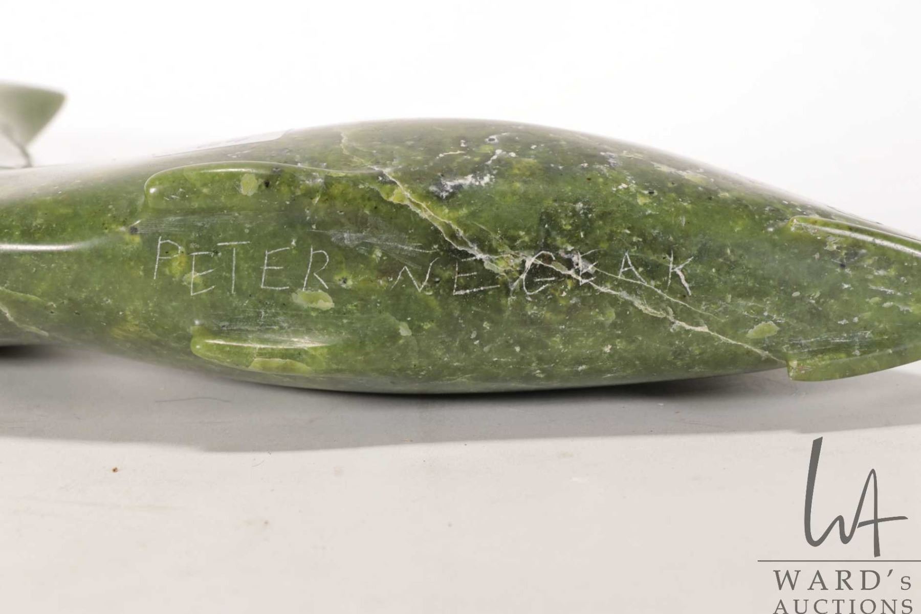 Hand carved Inuit soapstone fish sculpture signed by artist Peter Negeak, approximately 10" H X 9 1/