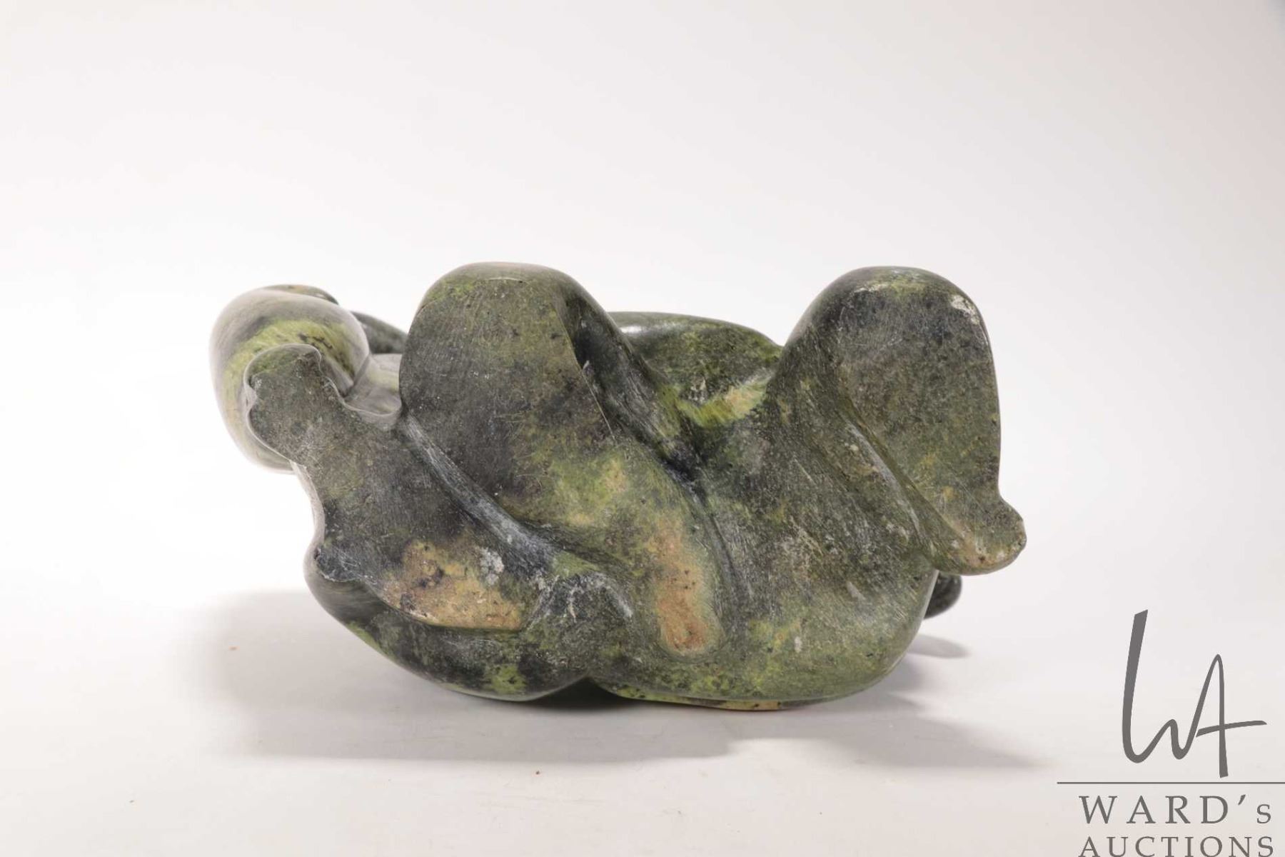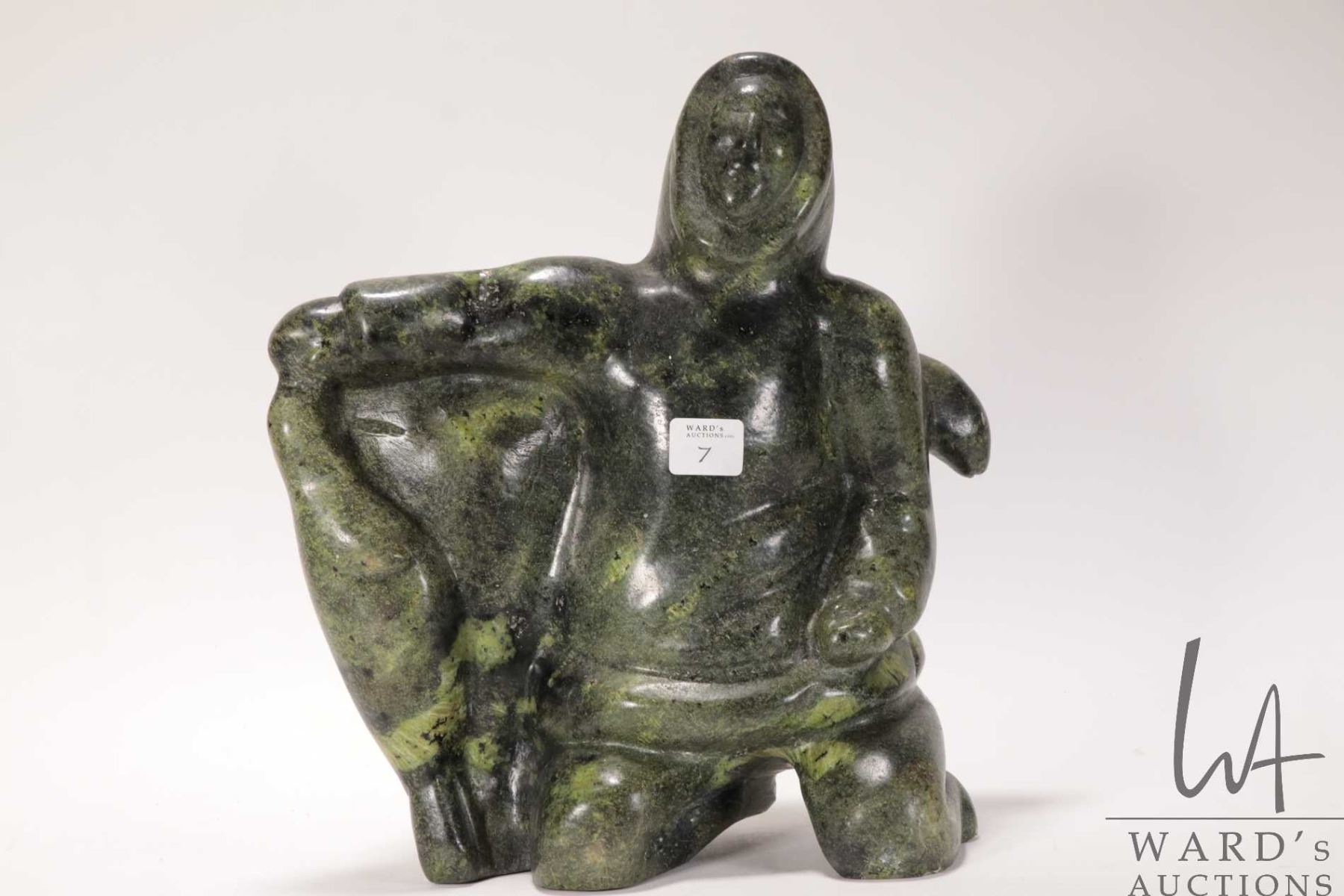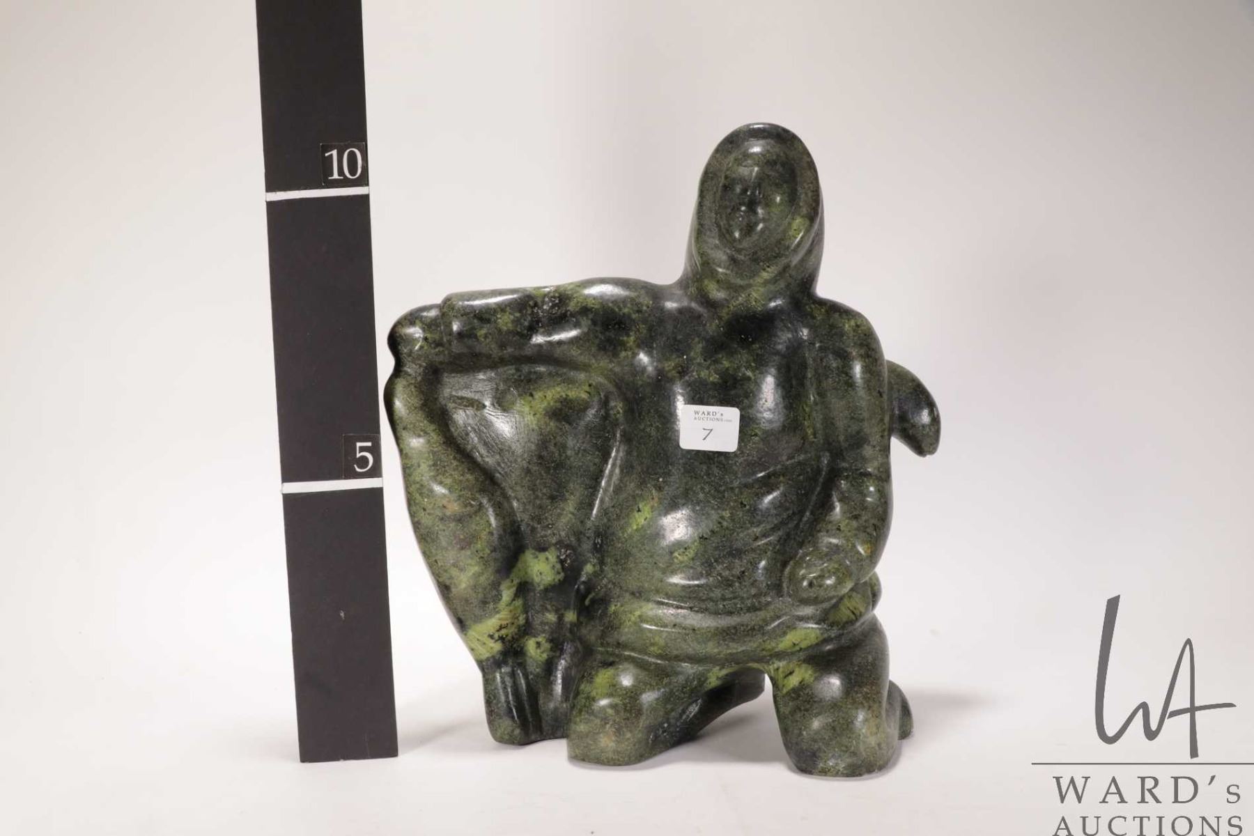 Hand carved Inuit soapstone of an hunter with seal, 11 1/2" in height