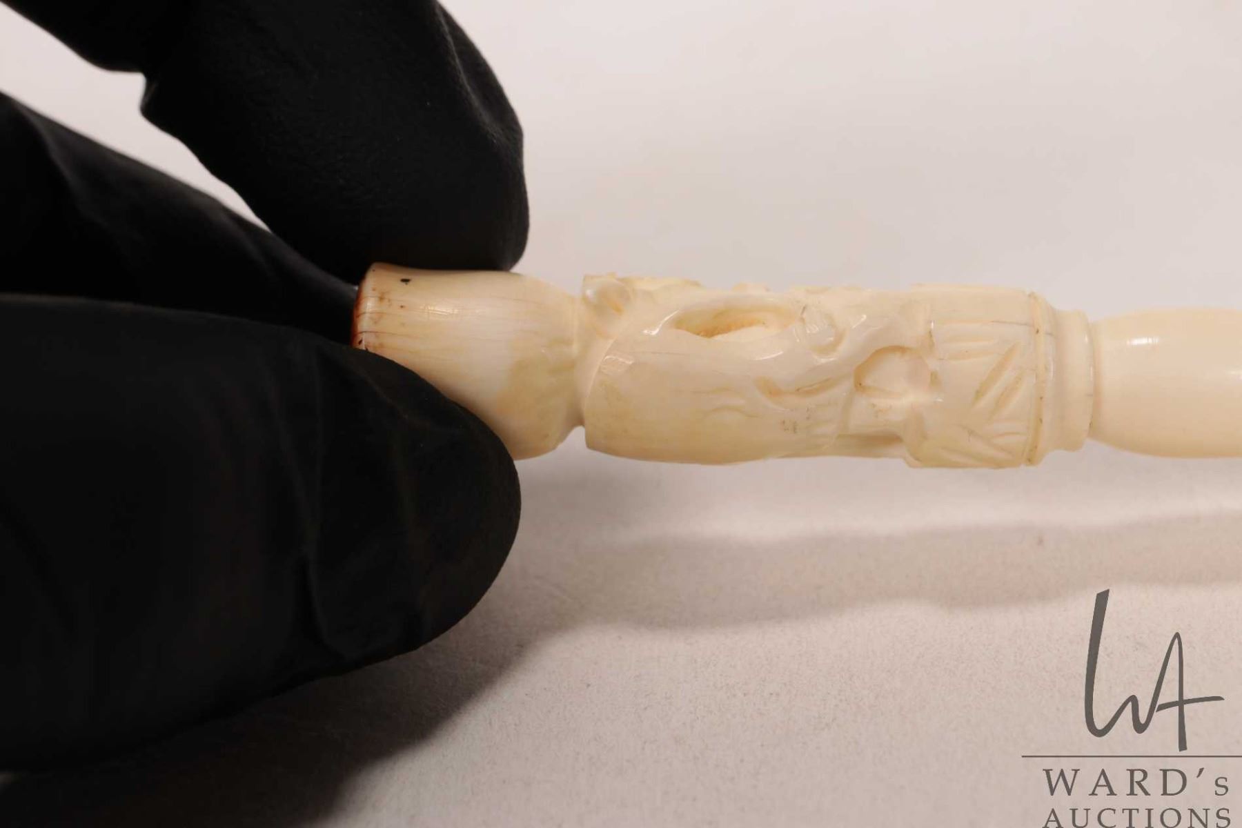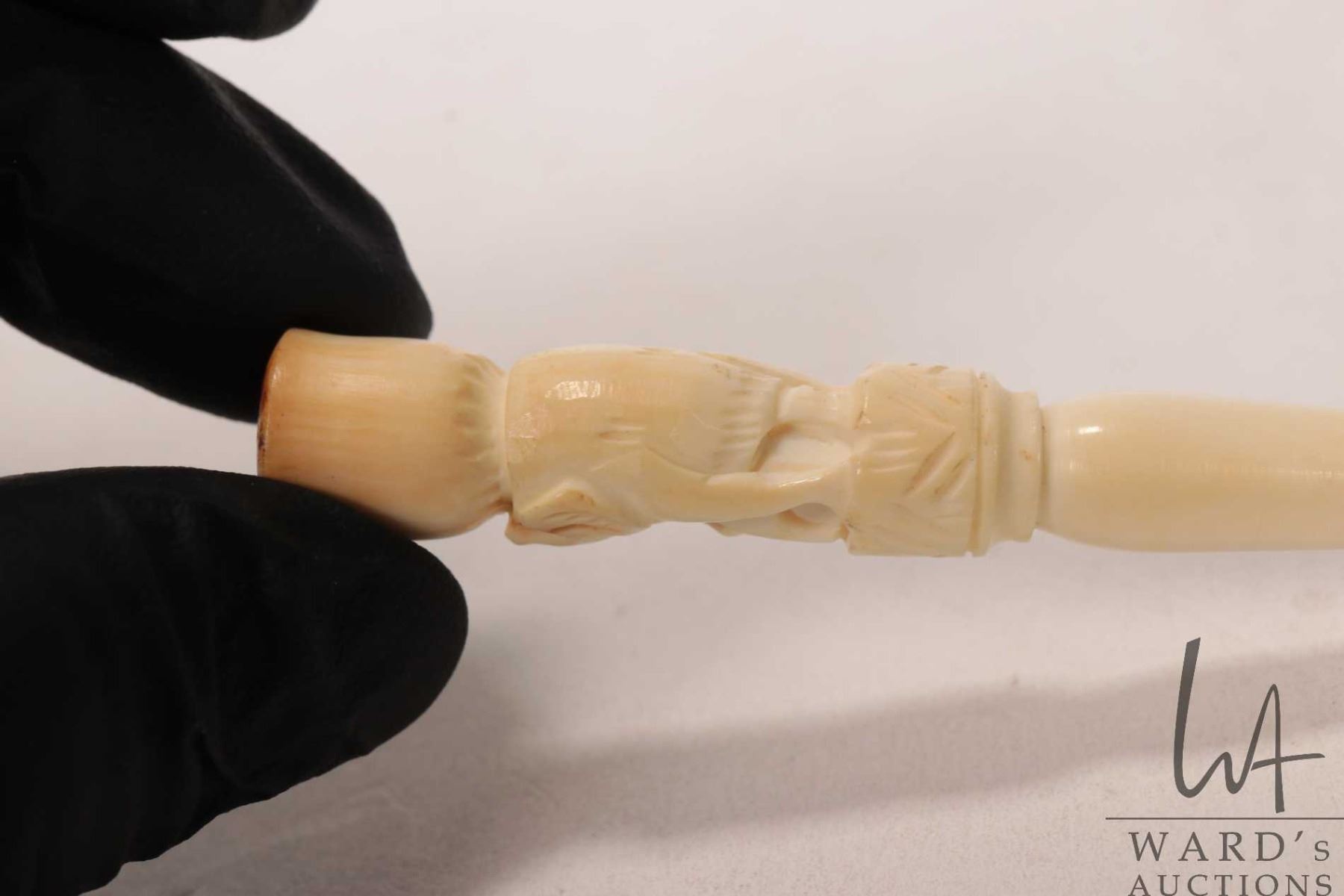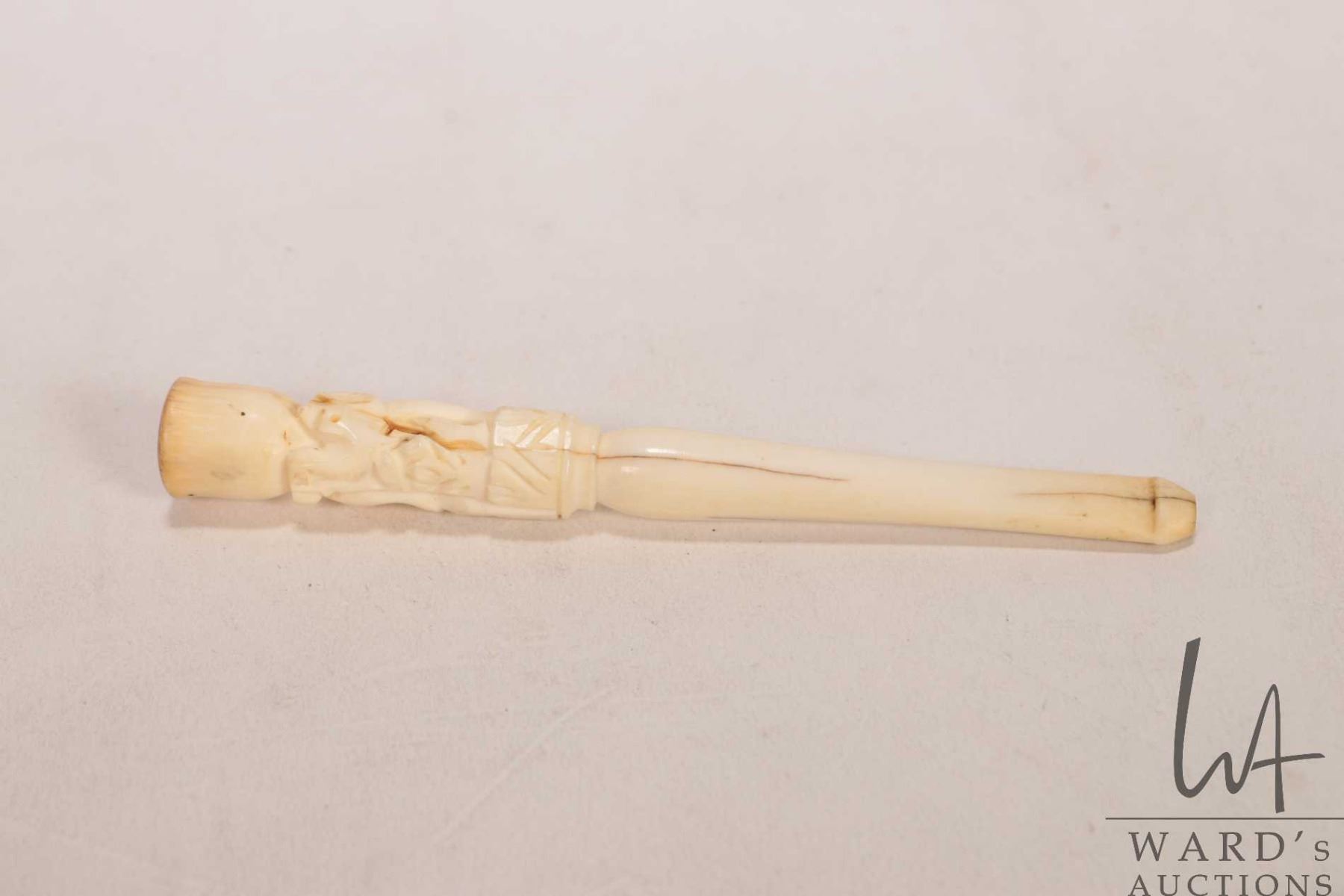 Hand carved, elephant motif ivory cigarette holder 4" in length