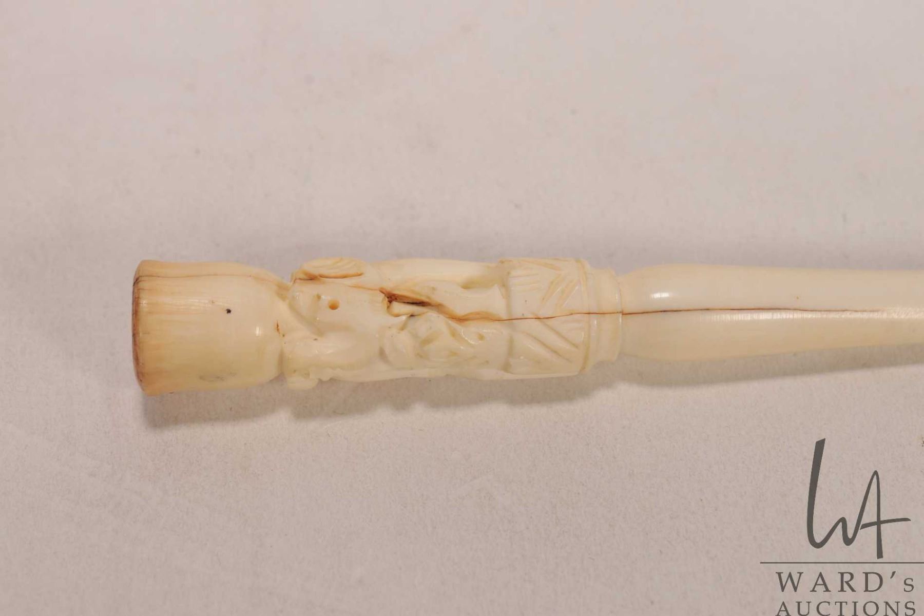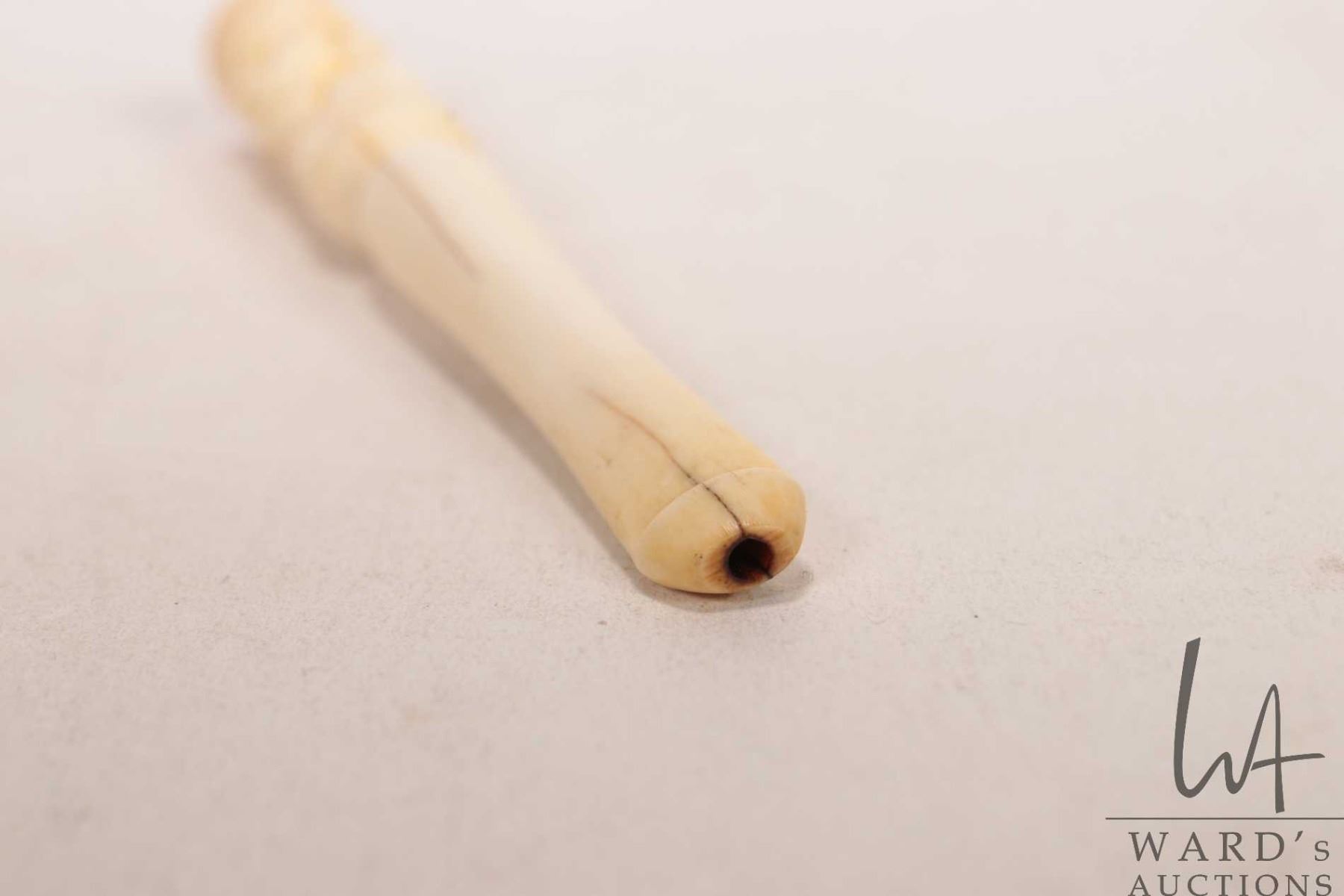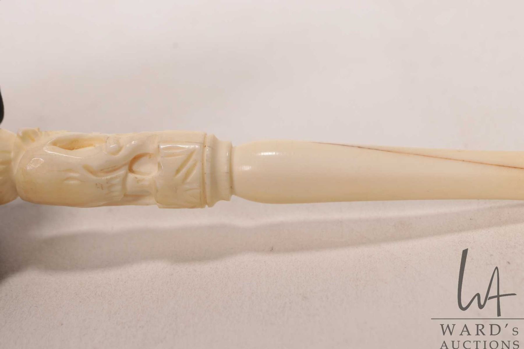Hand carved, elephant motif ivory cigarette holder 4" in length