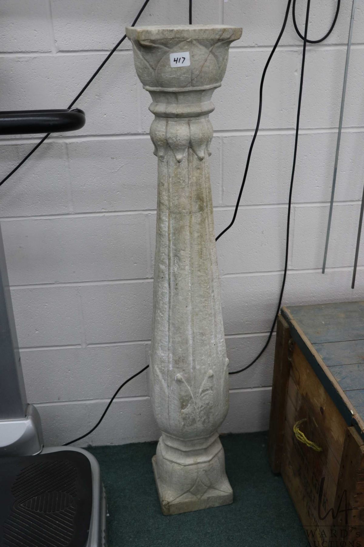 Hand carved limestone baluster garden column/ pedestal 50" in height, circa 1920