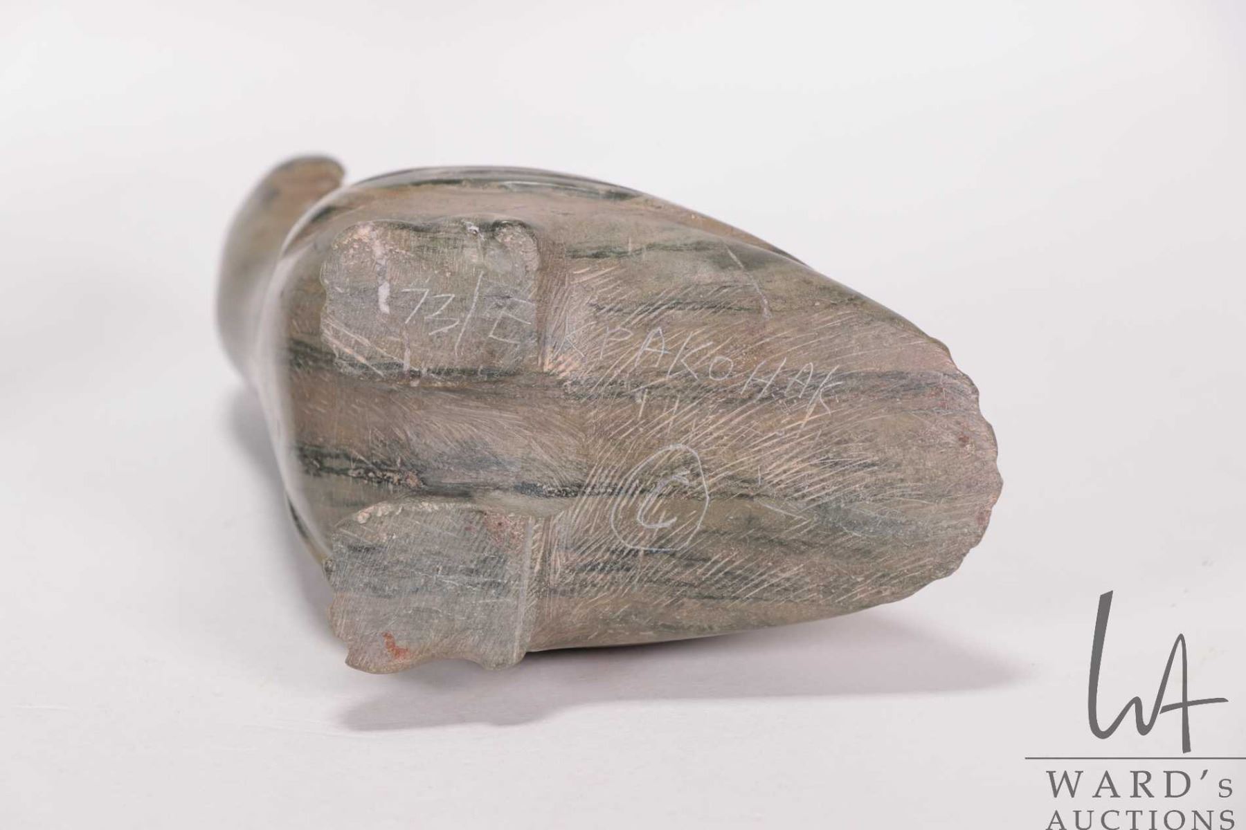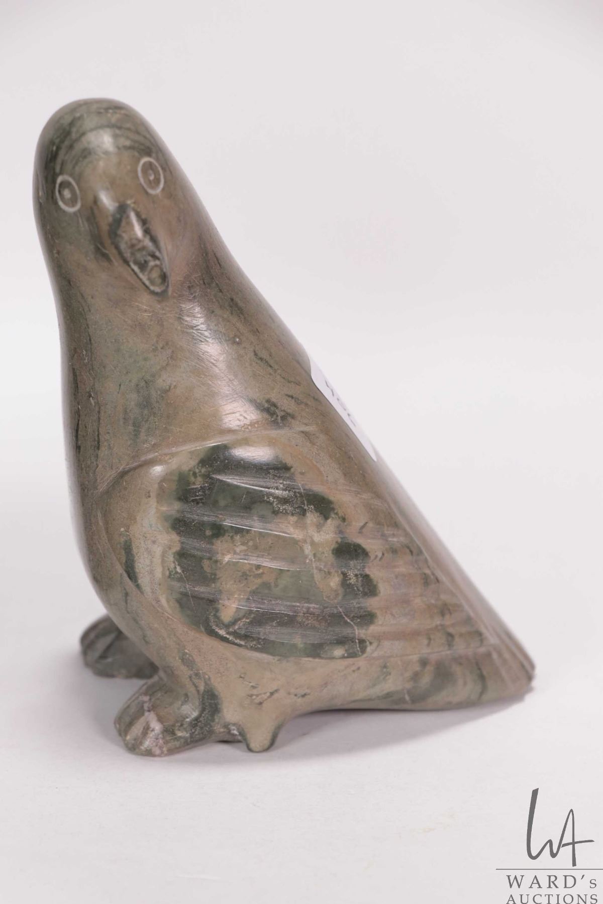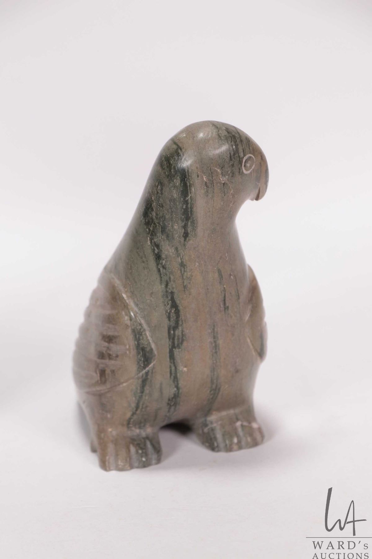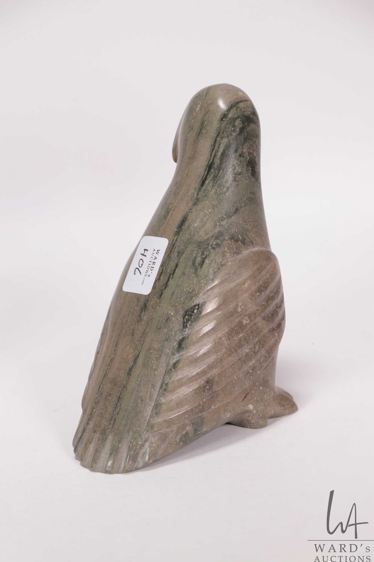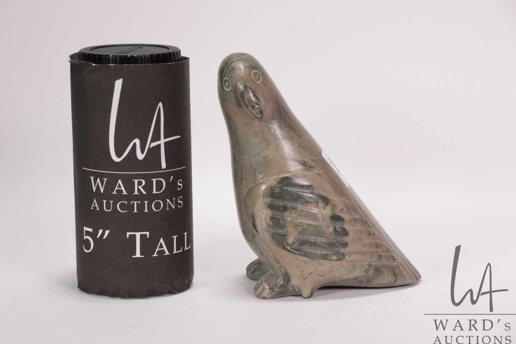 Hand carved soapstone bird, signed by artist E. Kpakohak '73, 5 1/4" in height