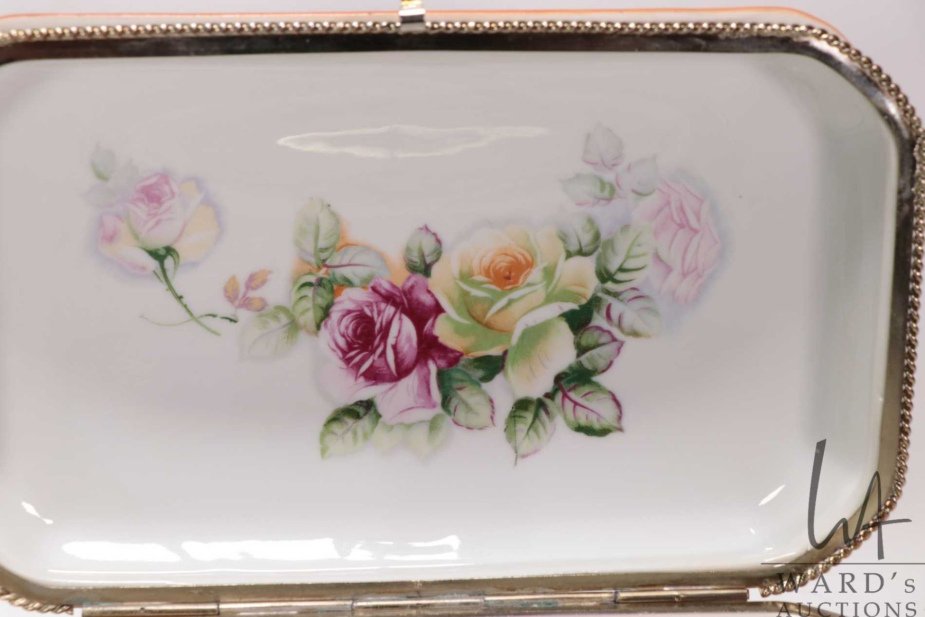 Hand painted R.S. Prussia hinged lid casket, 11" L X 7" D X 5 1/2" H