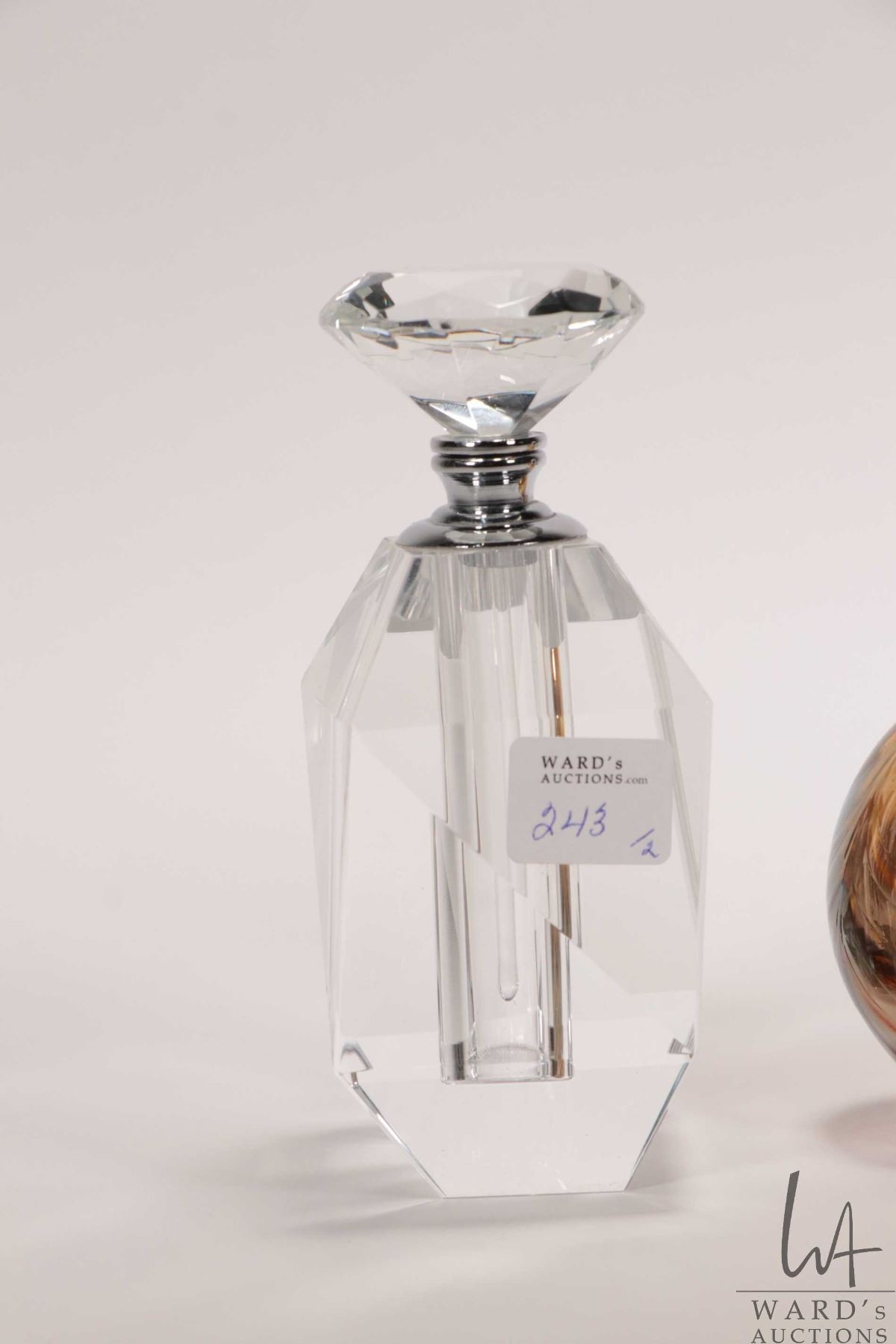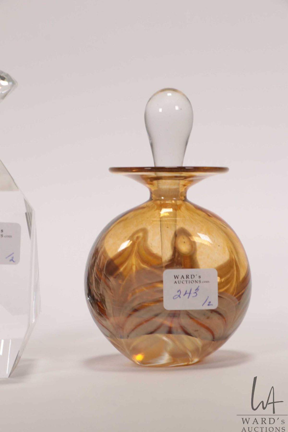 Handblown and artist signed 5 1/4" art glass perfume with dobber and a crystal perfume with dobber