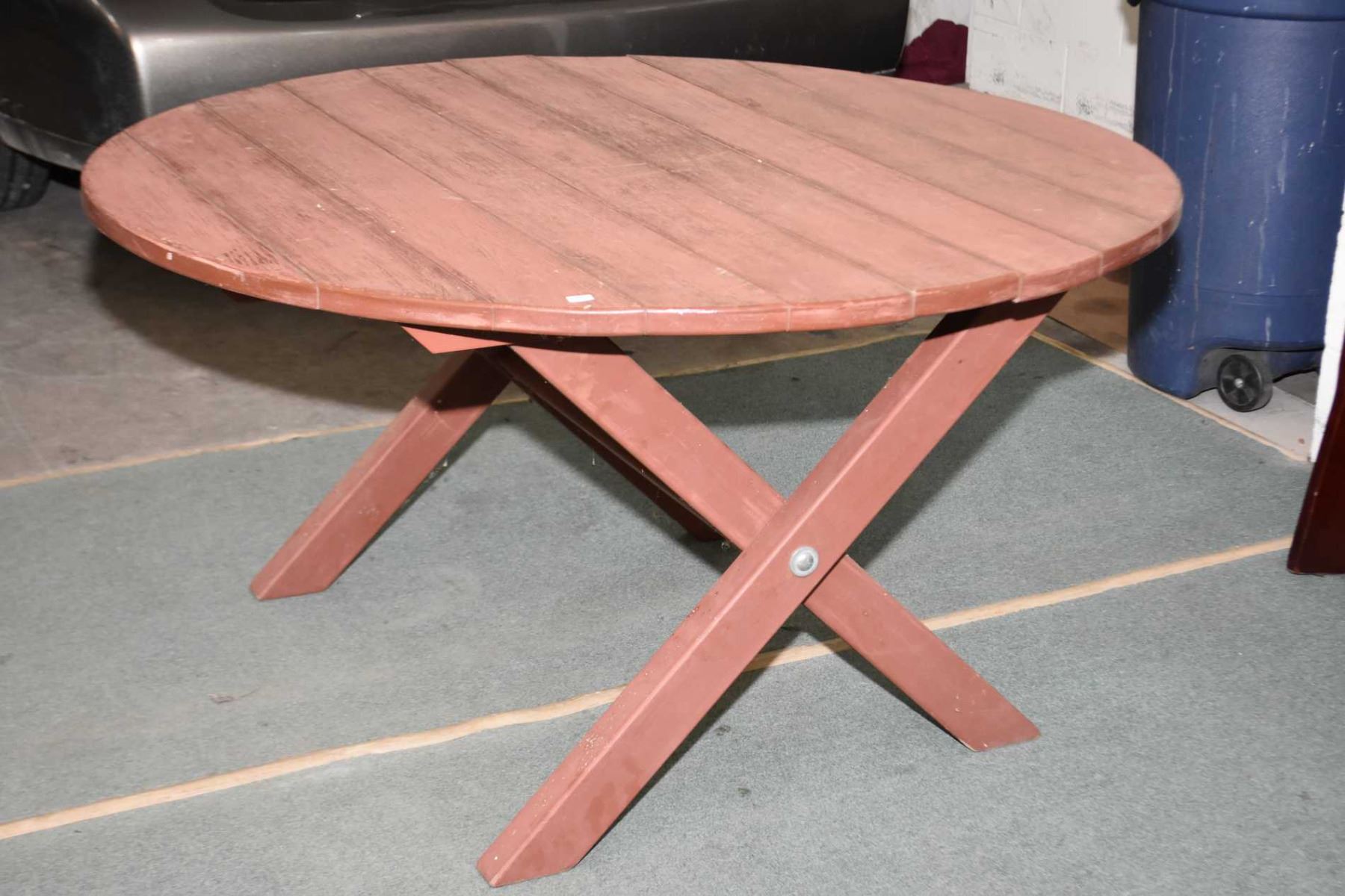 Handcrafted round wooden 51" outdoor table, 27" in height