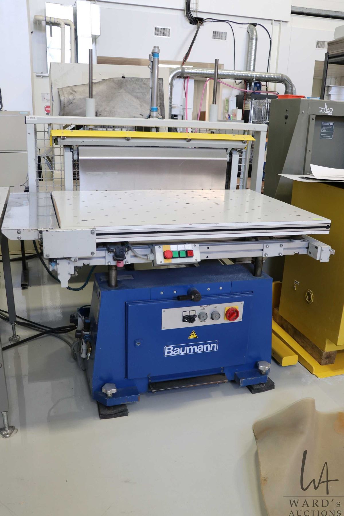 Heinrich Baumann BSB-3L pneumatically operated paper jogger number 211.290. - See video on website shot on March 30, 2026. This setup can be seen in operation on preview day.