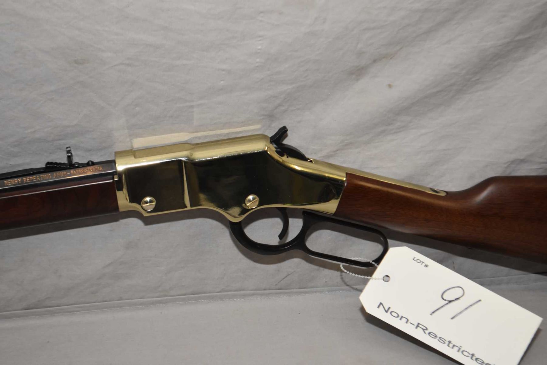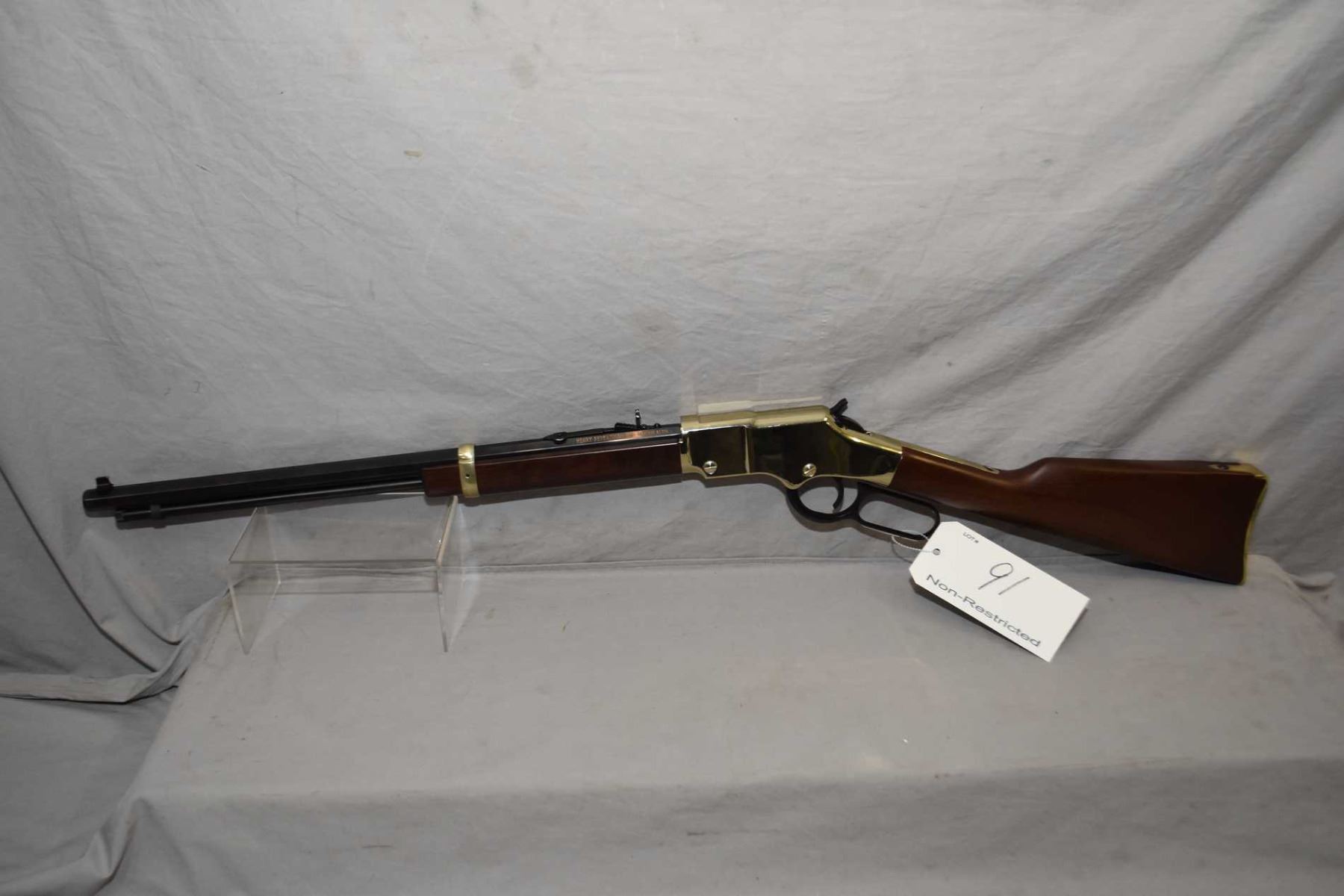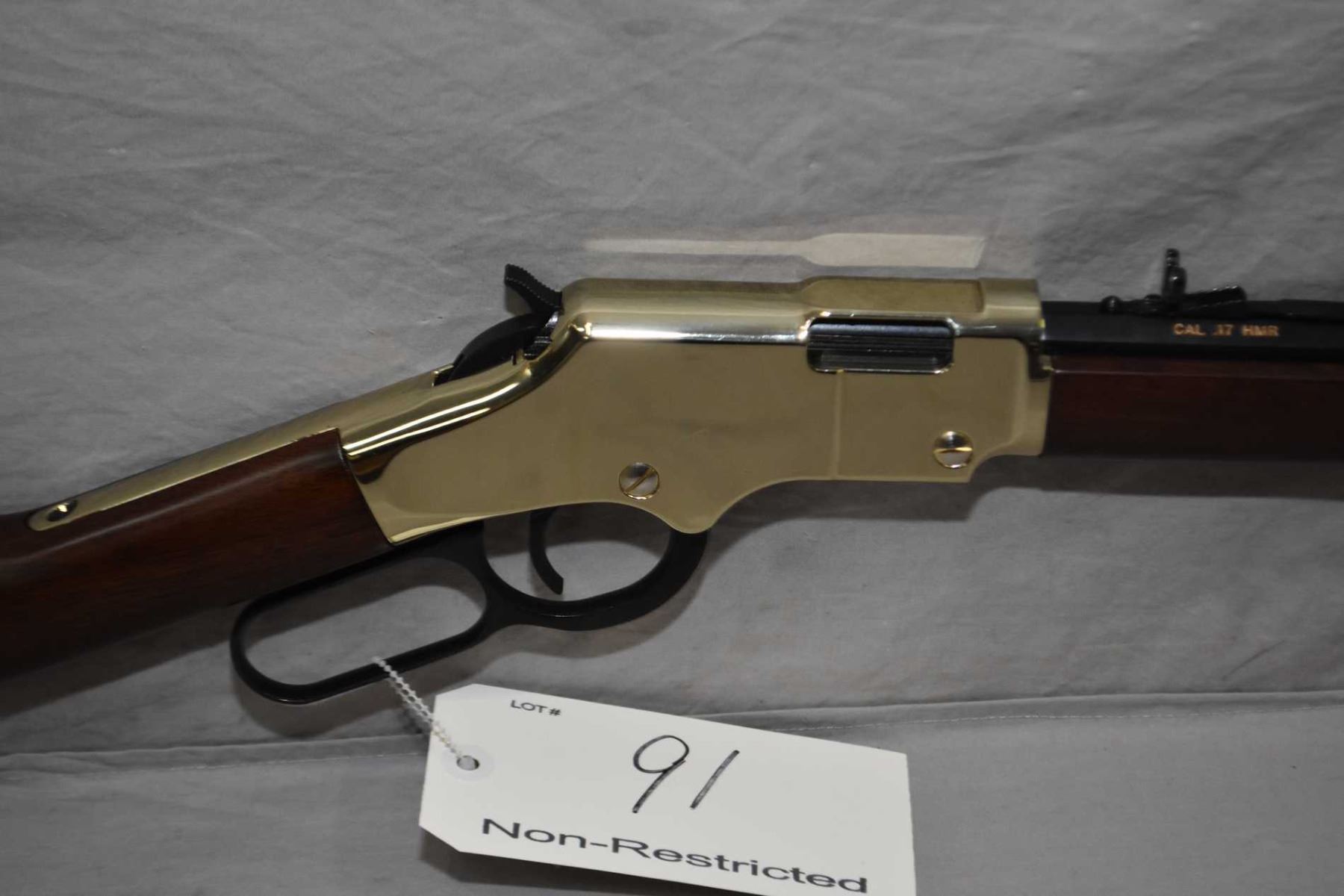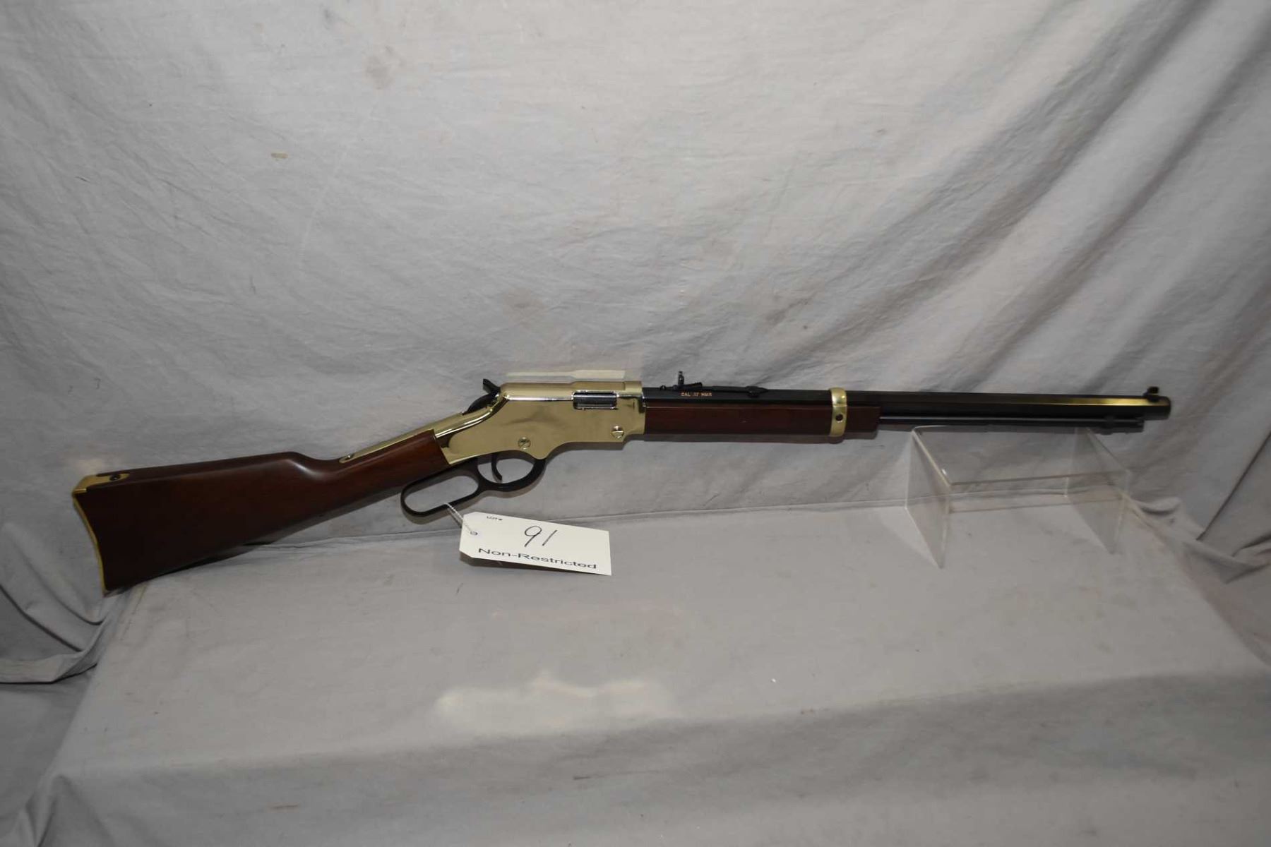 Henry Model Golden Boy .17 HMR Cal Lever Action Tube Fed Rifle w/ 20" octagon bbl [ appears excellent, few slight marks to wood and metal, blued finish, brass toned receiver, butt plate and barrel band, walnut stock and forend ] Ser # GB037279V