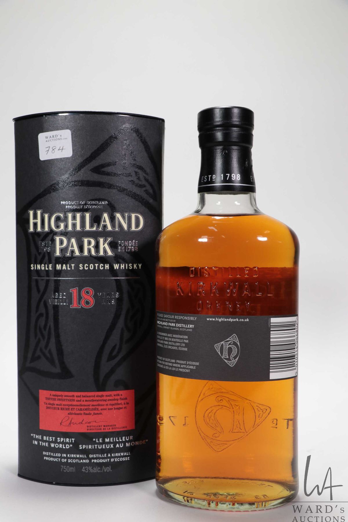Highland Park/ 18 Year Old/ Single Malt Scotch Whisky/ 750ml/ 43% ABV NOTE: Alcohol cannot be insured by any courier in Canada. Local pick up recommended. Canadian bidders only.