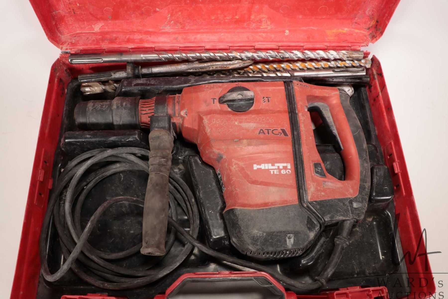 Hilti TE 60- ATC hammer drill, includes assorted bits and carrying case, working at time of cataloguing