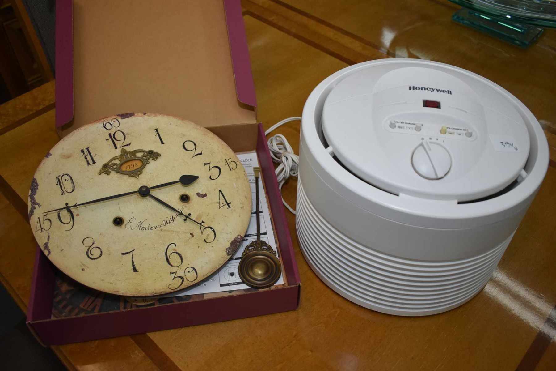Honeywell humidifier and a Time Works Inc. Copenhagen 13" model CH13P wall clock with original packaging