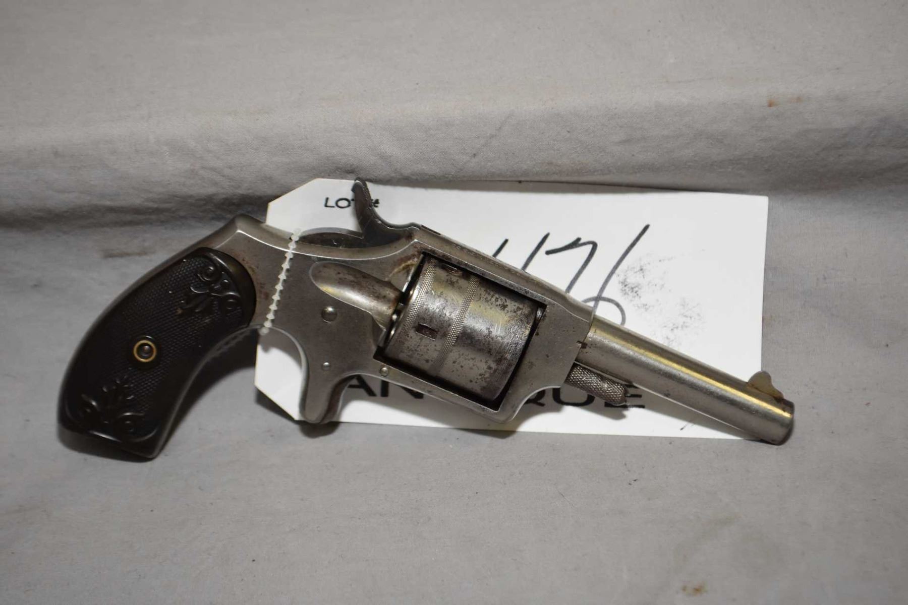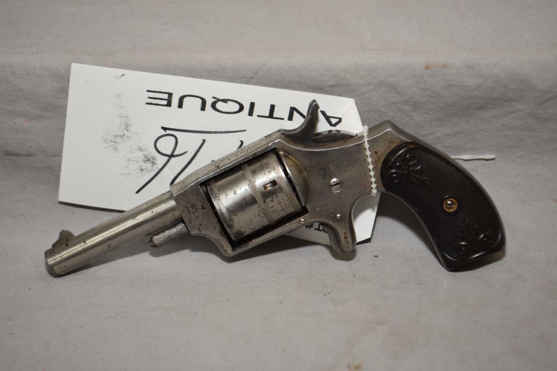 Hopkins & Allen Model Dictator .32 Rimfire Cal 5 Shot Spur Trigger Revolver w/ 73 mm bbl [ flaking nickel finish, good checkered grips, functions ] Ser # 264 ANTIQUE NO PAL REQ