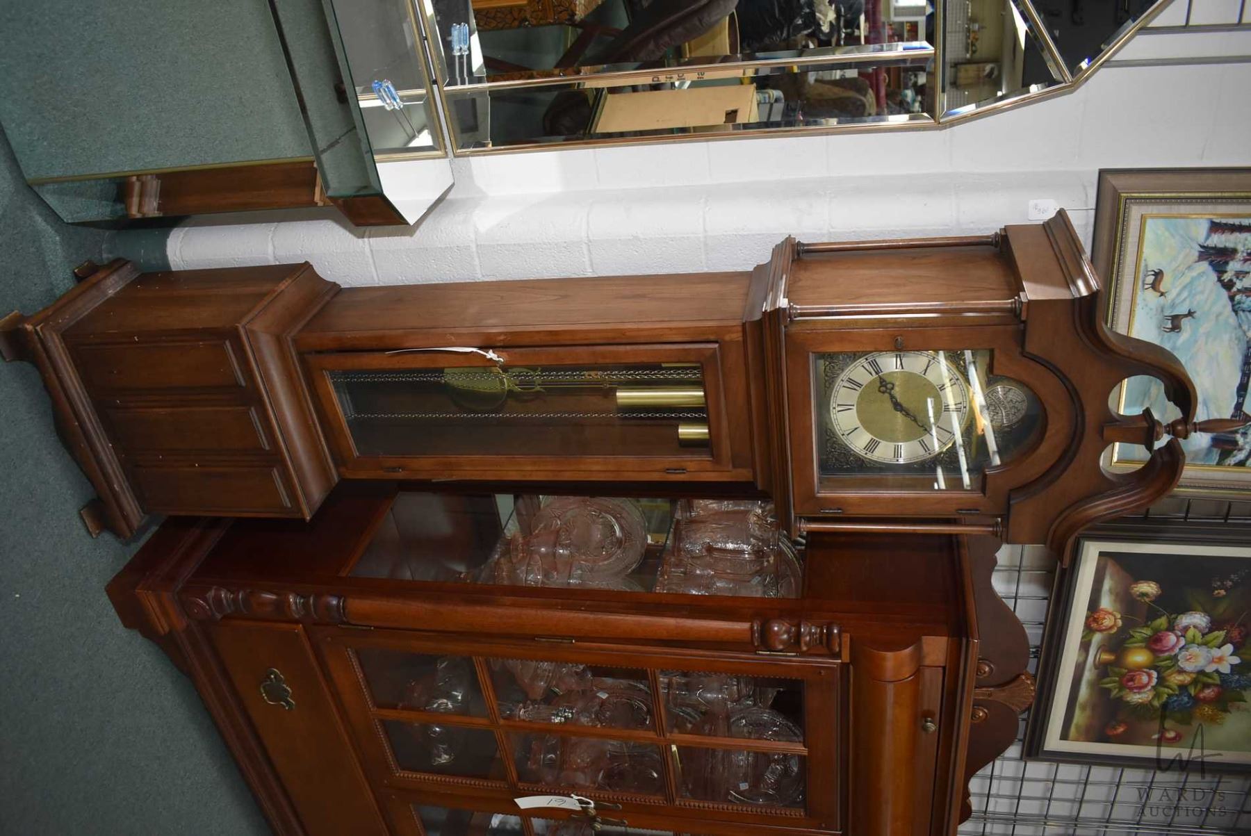 Howard Miller long case clock with weight driven German movement, not tested at time of cataloguing, check back for updates