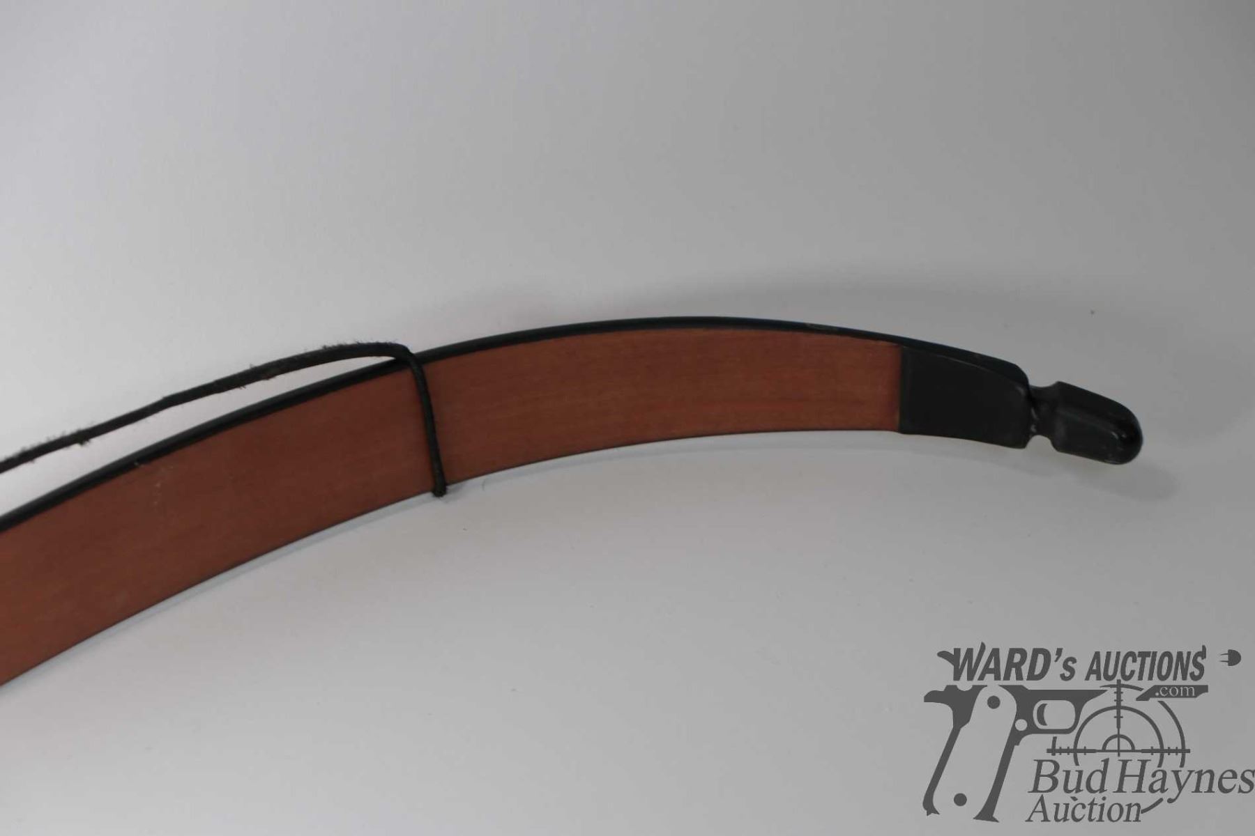 Hoyt Game Master right hand re-curve bow with camo. and natural wood finish, no specs. found on bow plus a selection of arrows with no tips. Descriptions subject to change.