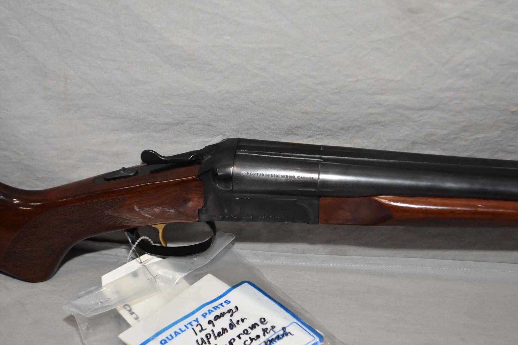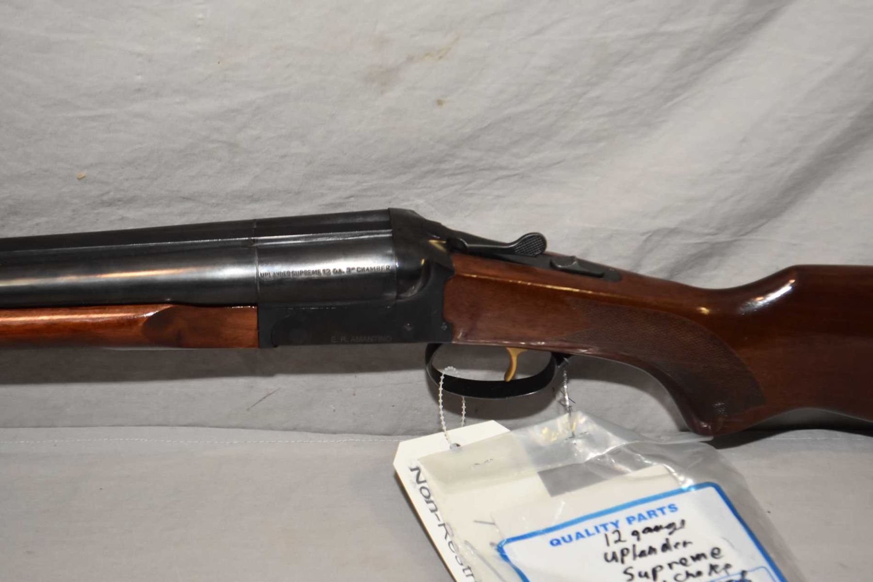 IGA - Gaucha ( E.R. ARMANTINO ) Model Uplander Supreme .12 Ga 3" Side By Side Break Action Shotgun w/ 28" matte rib bbls [ appears excellent, blued finish, single gold plated trigger, varnished pistol grip stock and forend, with recoil pad, c/w original booklet, screw in chokes with tool, slight marks to wood and metal ] Ser # A051416 - 12