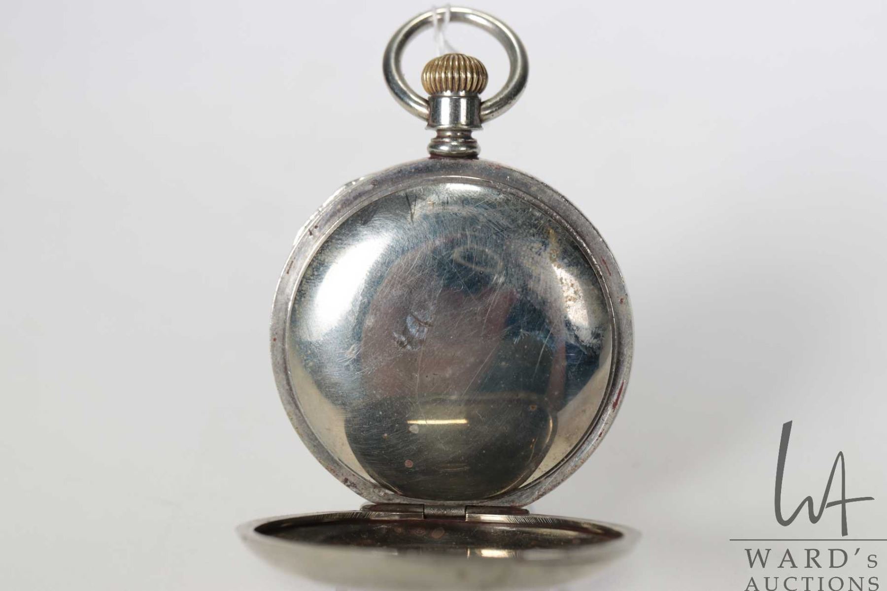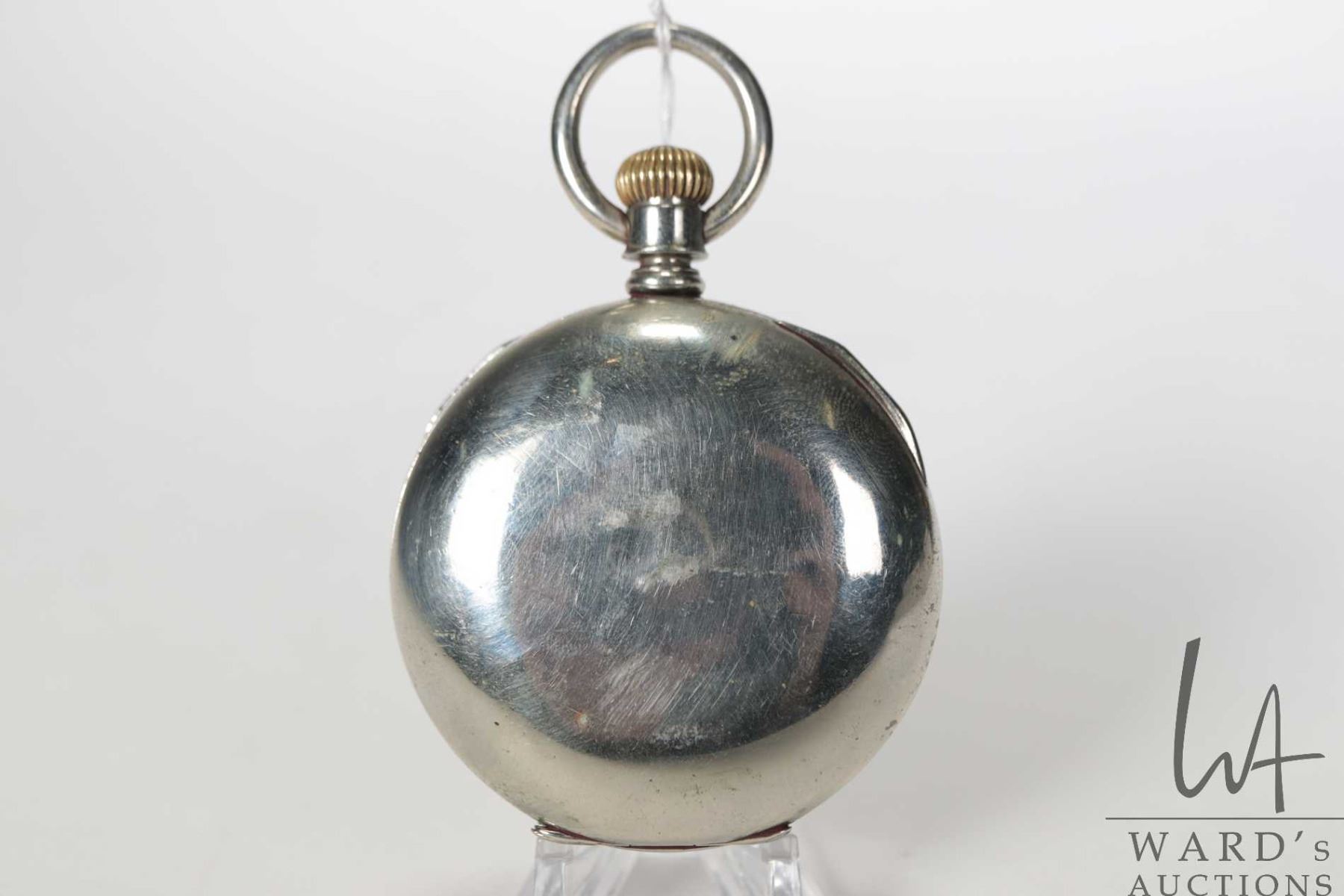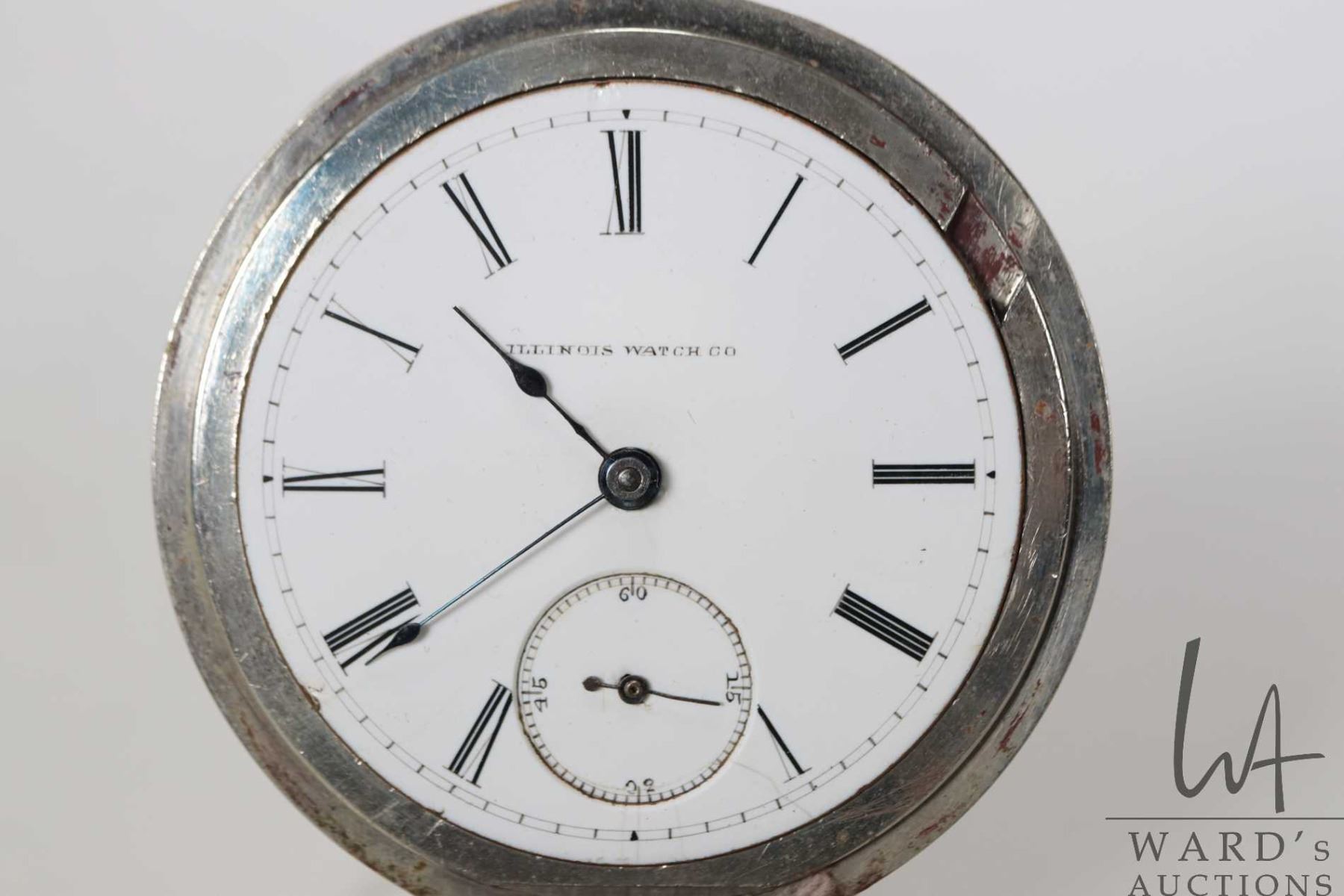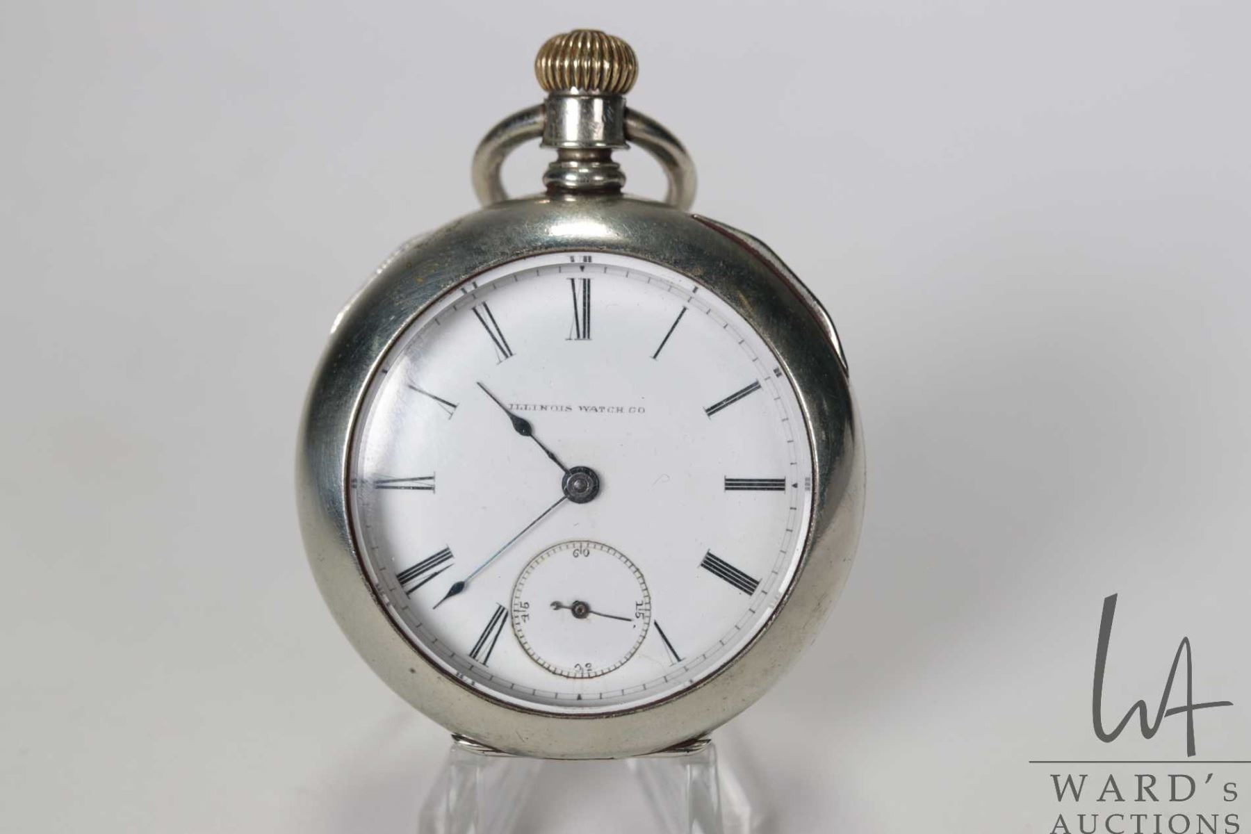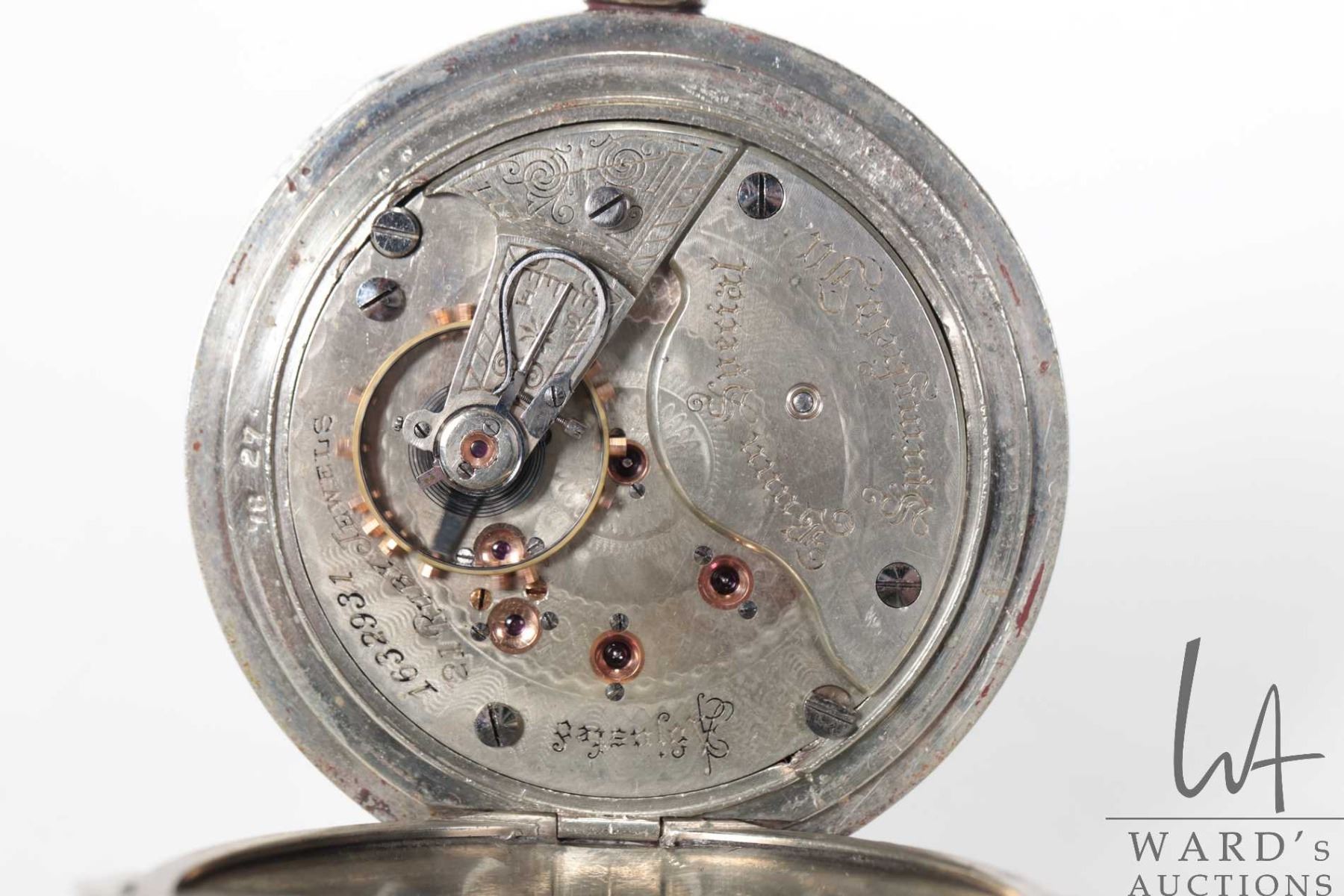 Illinois size 18s, 21 Jewel, Grade Bunn Special, Model 6. Serial No. 1632931. Estimated production year of 1902. Full nickel plate. Stem wind and lever set. Movement signed Bunn Special, Springfield,Ill. Single sunk porcelain, black roman numerals, blued spade hands, dark grey second hand. Housed in a Dueber silverine case.