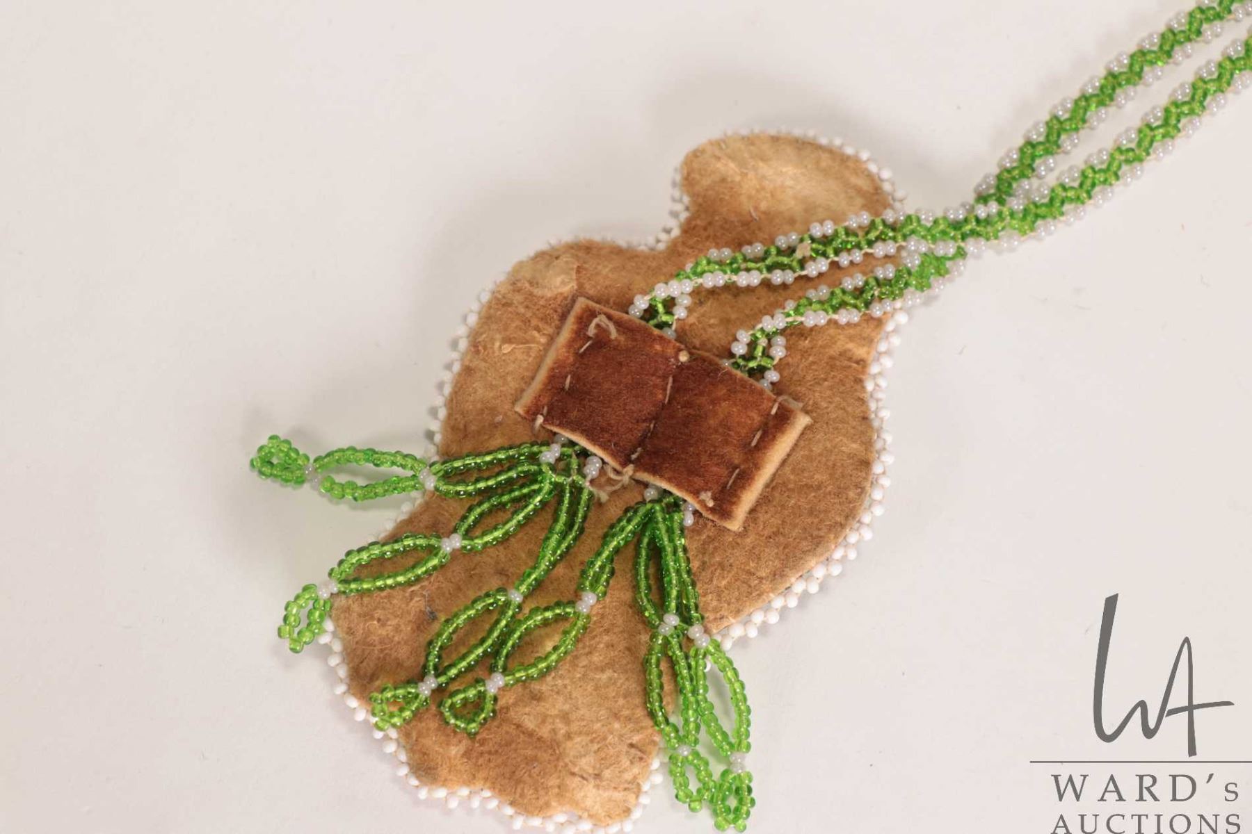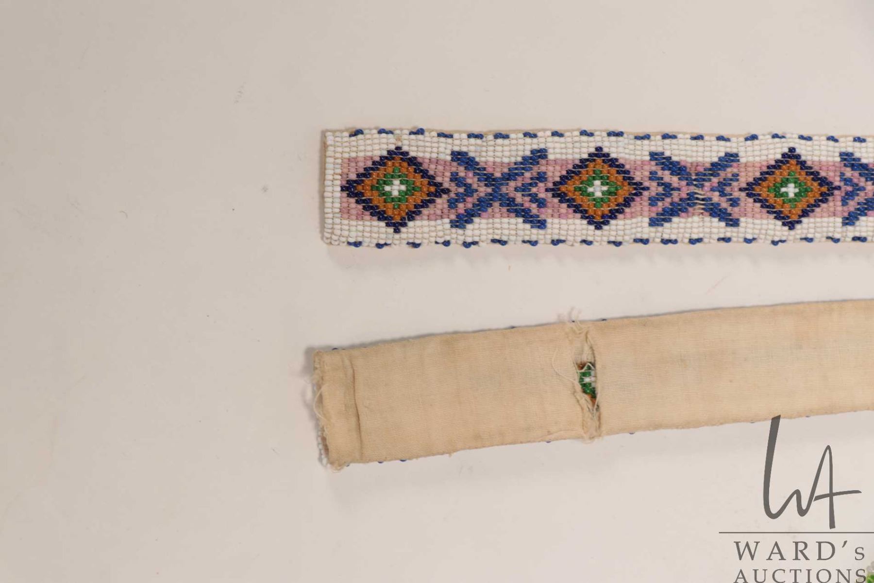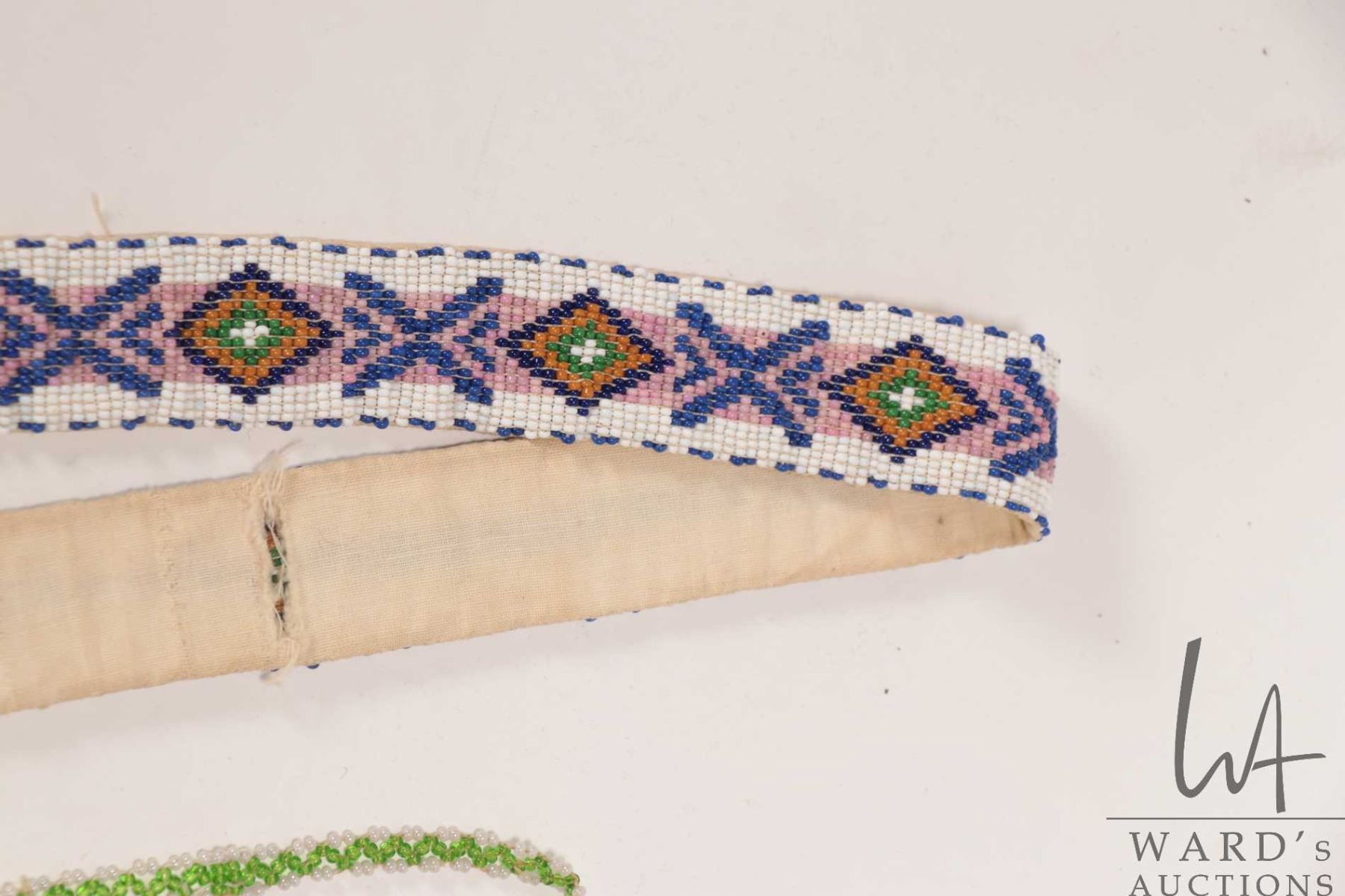 Indigenous beaded sash, 30" in length and a beaded bird necklace19"
